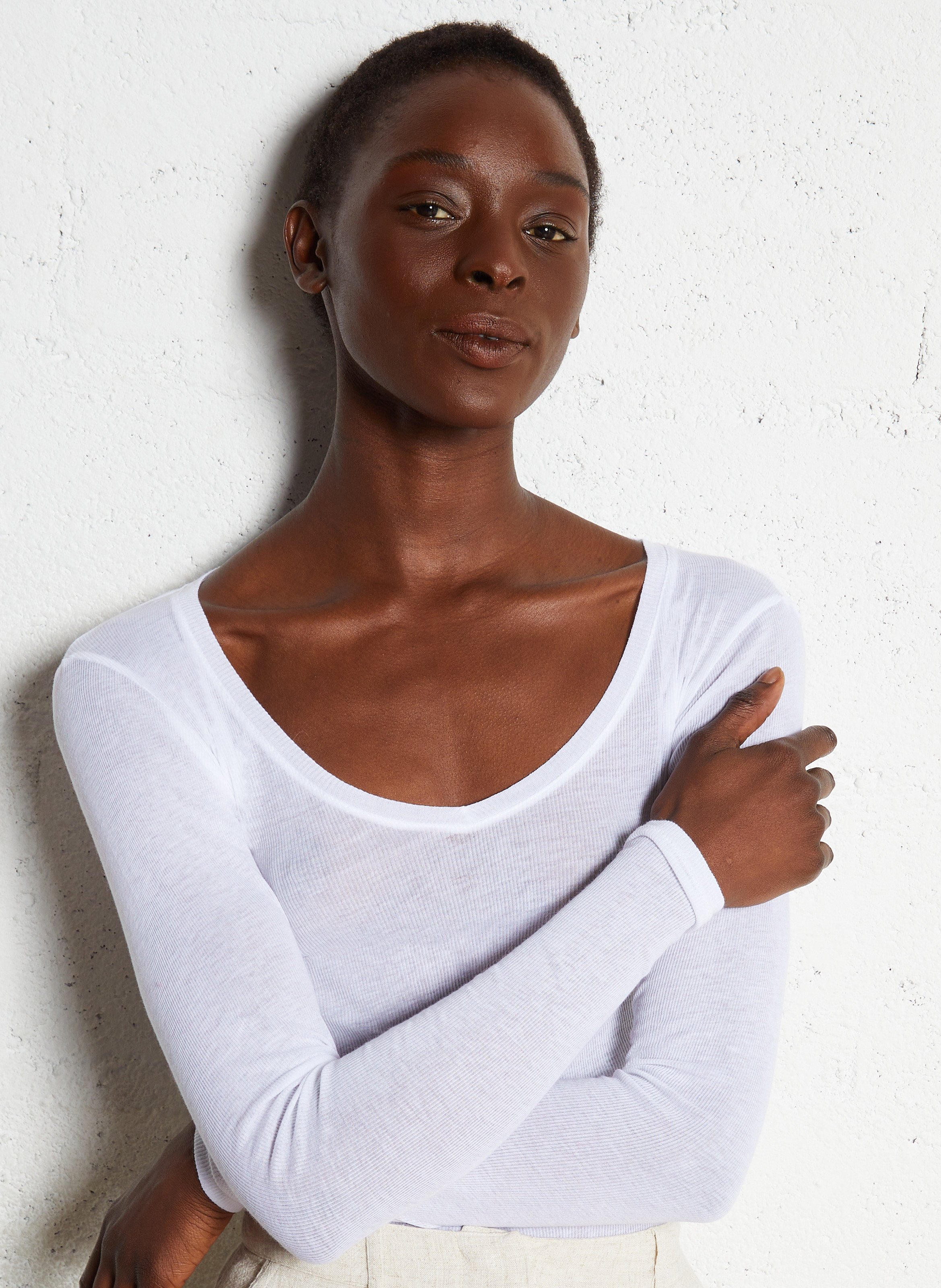 american vintage Tailliertes V-Ausschnitt T-Shirt aus Baumwolle - Weiss – MASSACHUSETTS