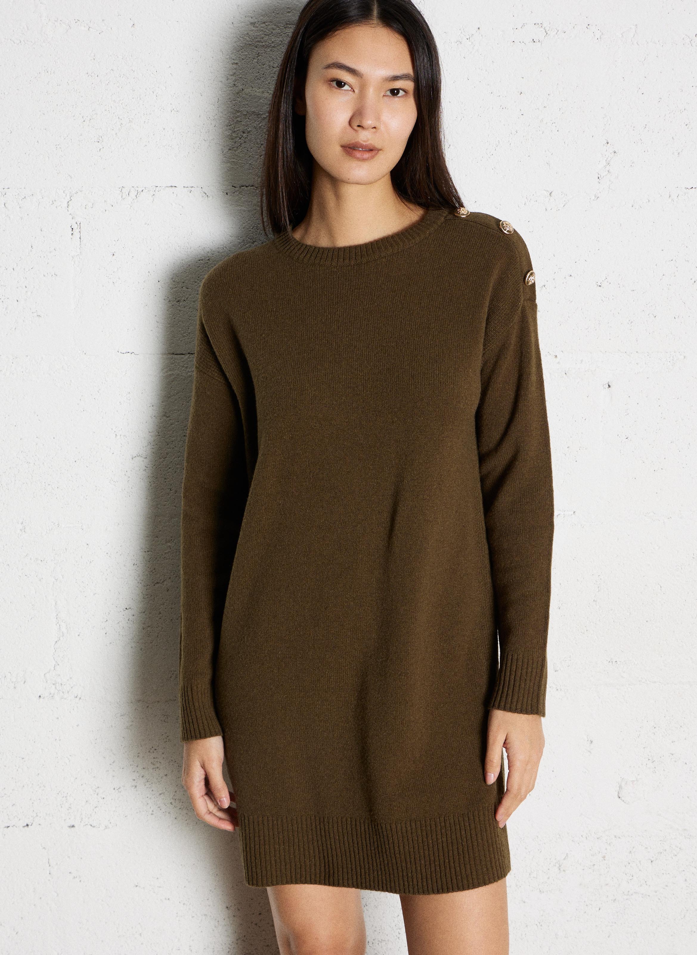 maison 123 Kurzes gerade geschnittenes Wollkleid mit Rundhalsausschnitt - Khaki – LINA