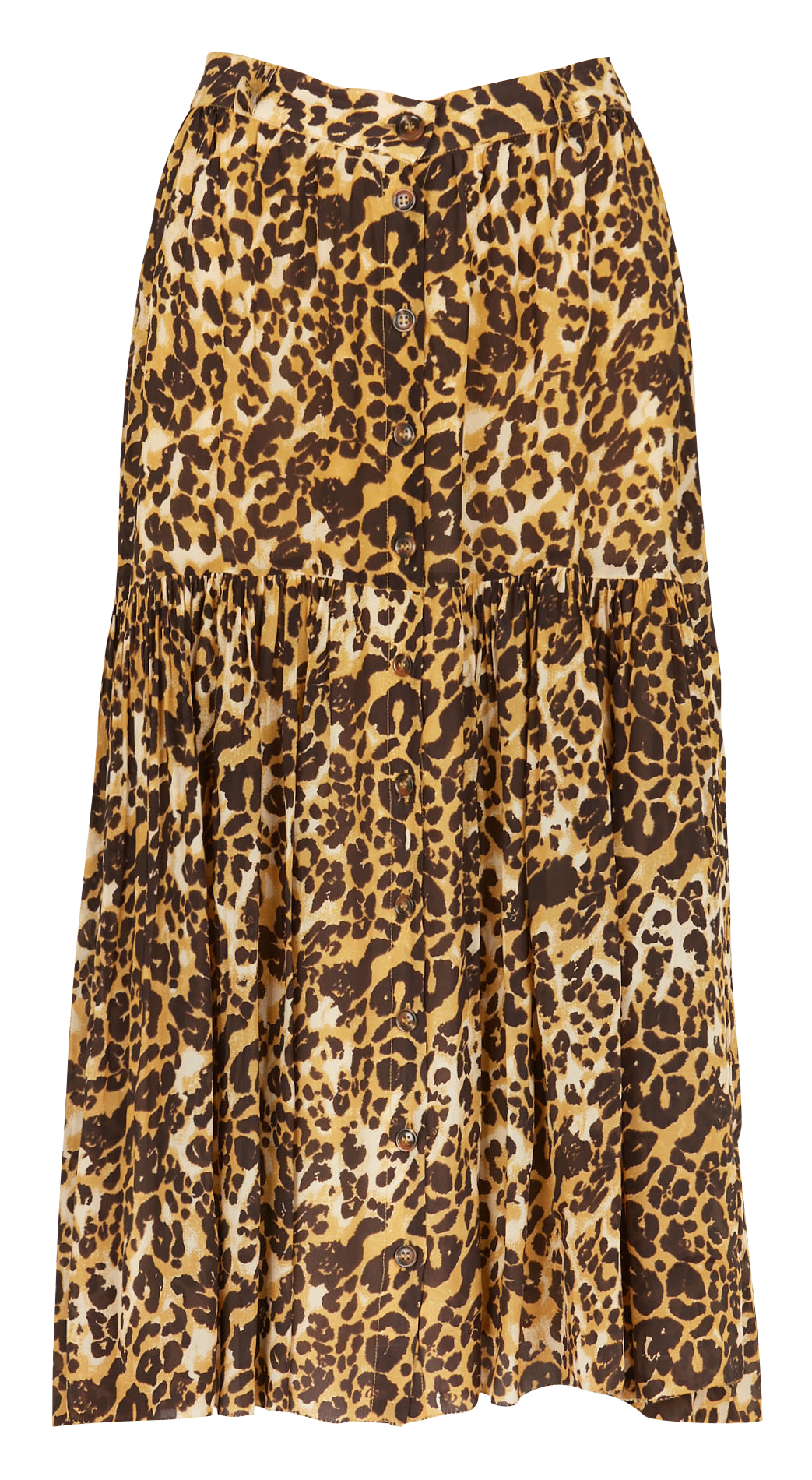 Langer, ausgestellter Rock mit Print von SWILDENS für Damen.
