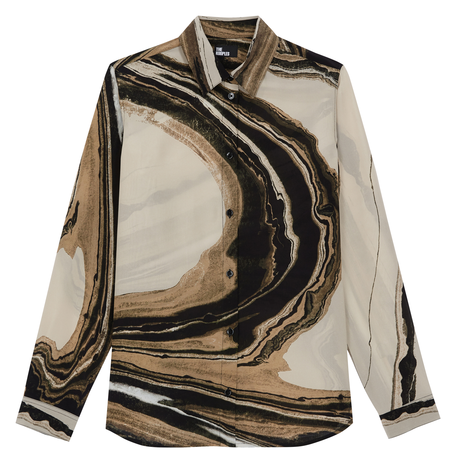 the kooples - Klassischer Kragen - Langärmlig - Geknöpfter Verschluss - Langes bedrucktes Hemd - 100 % Seide - Beige