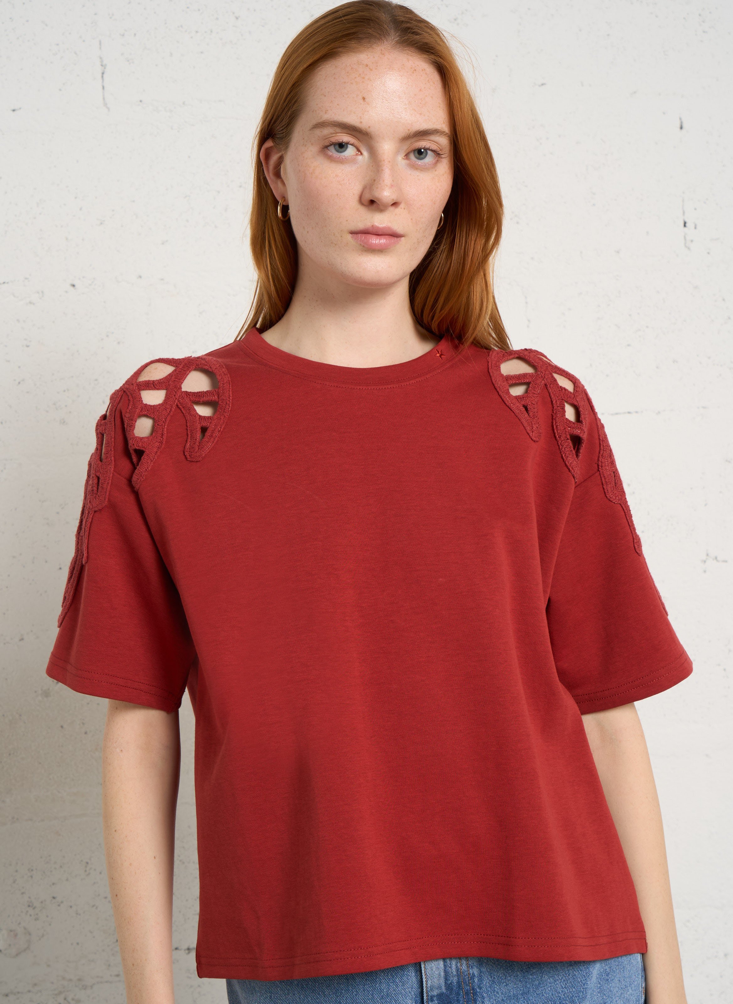 la petite etoile T-shirt ample col rond en coton mélangé - Rouge – TAISY