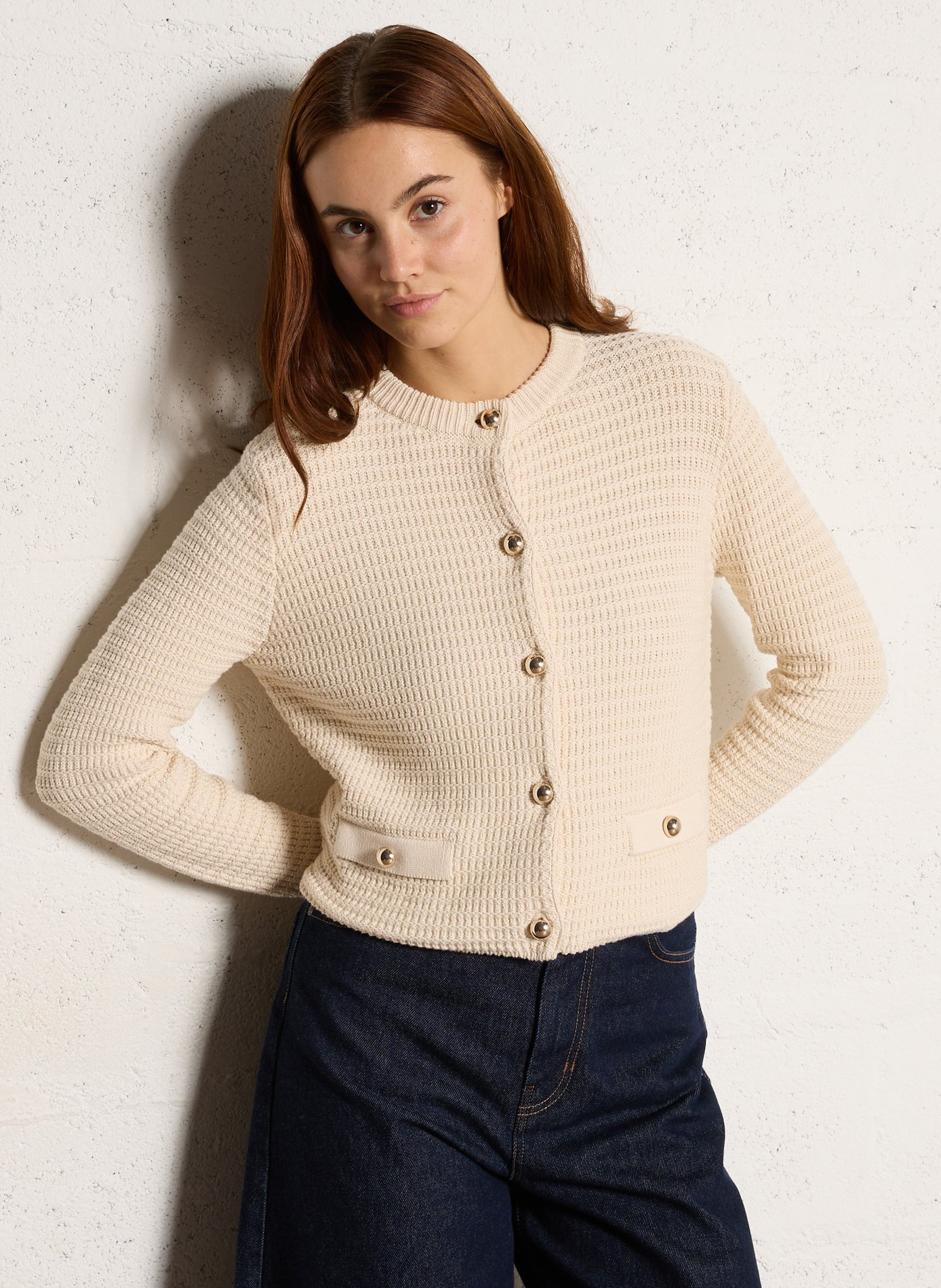 max mara week end Gilet droit col rond en coton mélangé - Beige