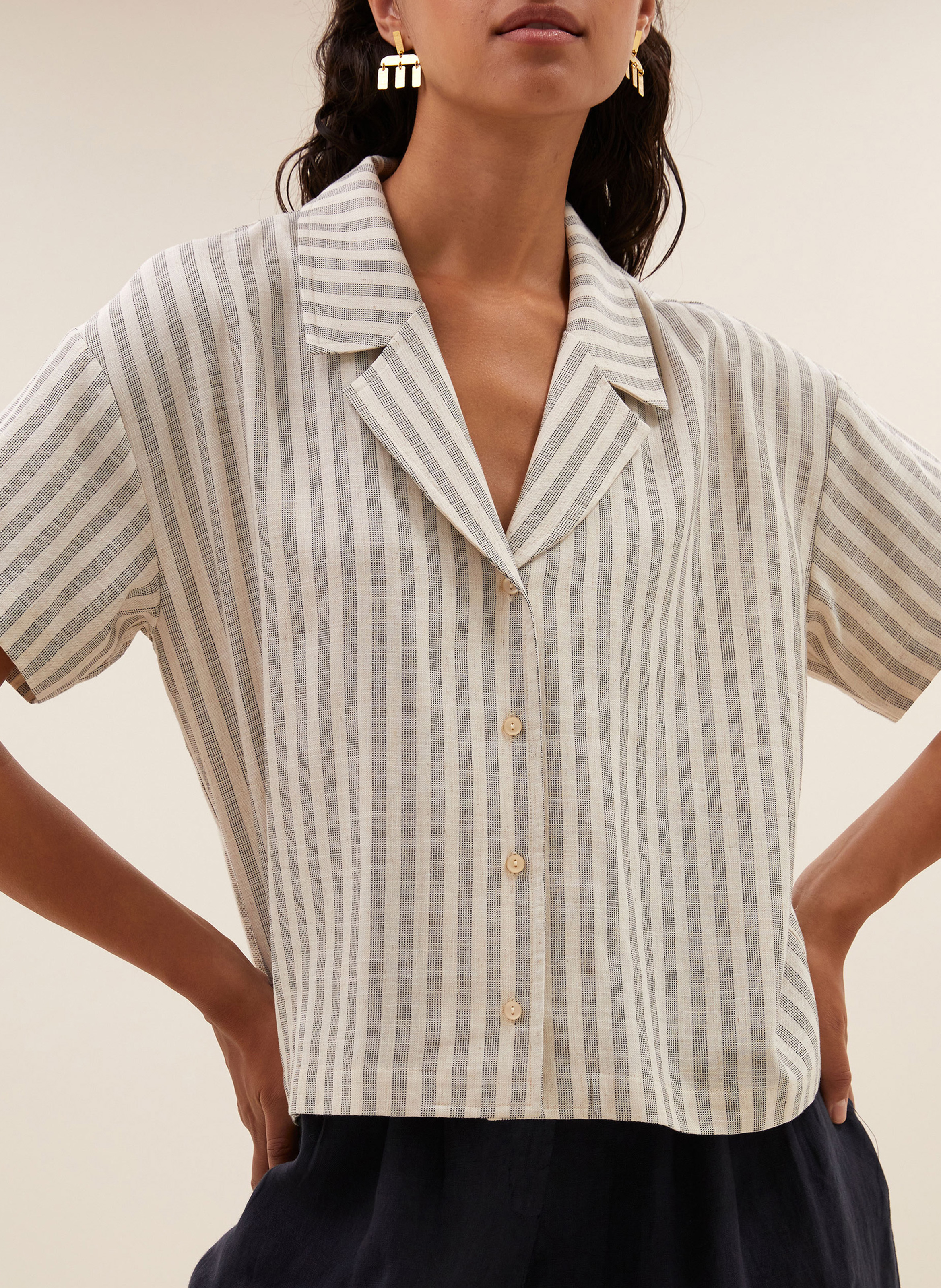 by bar Recht, gestreept overhemd - Beige – JAKE