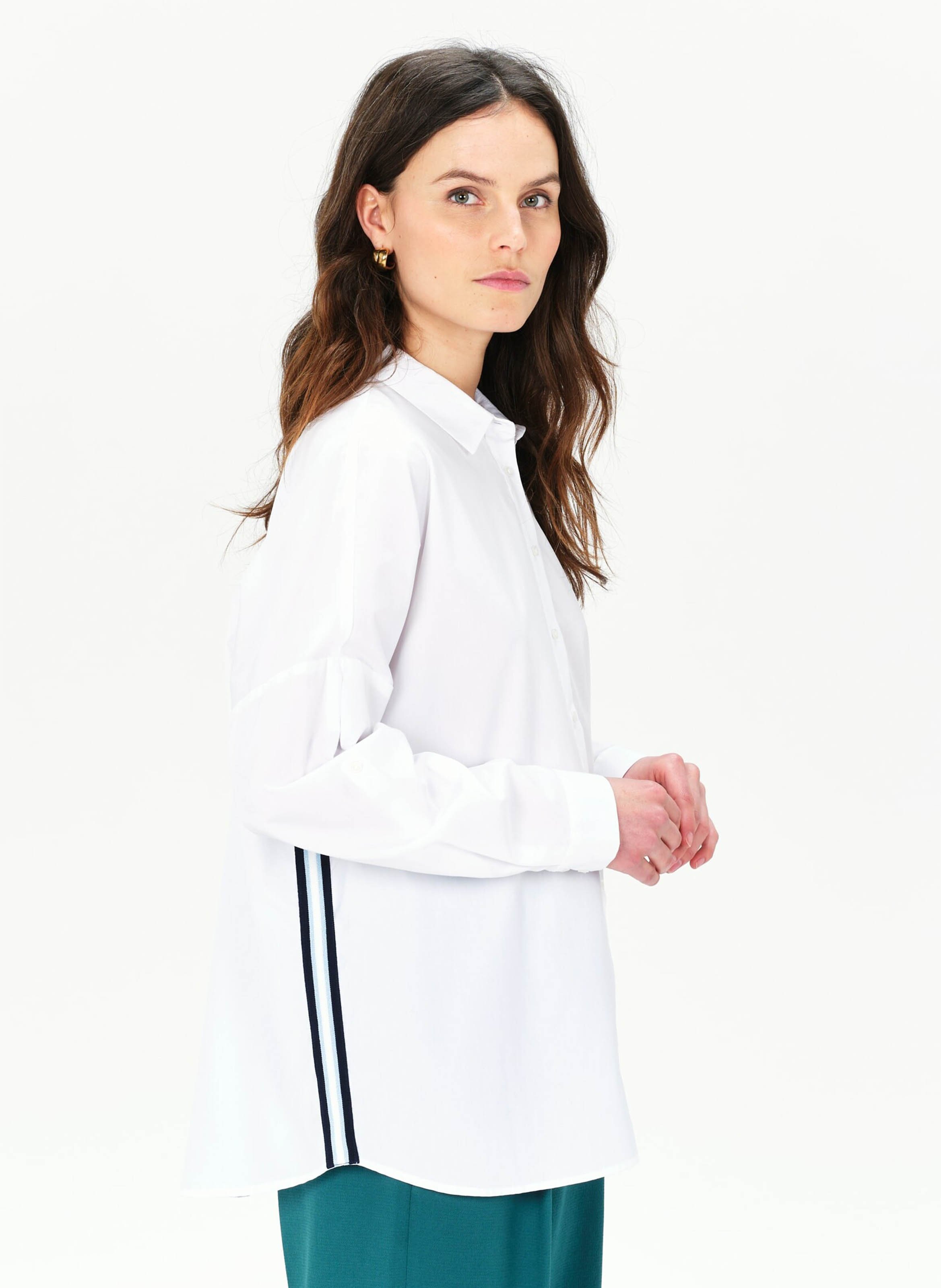 caroll Ruimvallende blouse met Italiaanse kraag en driekleurige streep - Wit – 241C-CLAUDIO