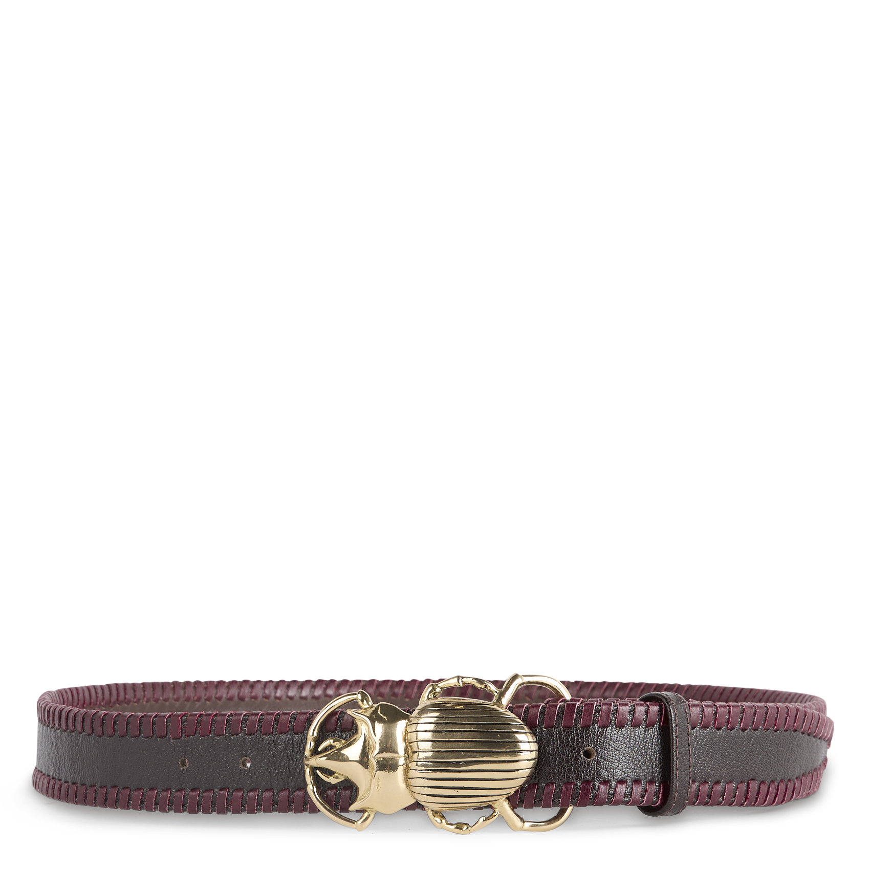 Deze leren riem is versierd met een prachtige scarabeevormige gesp.