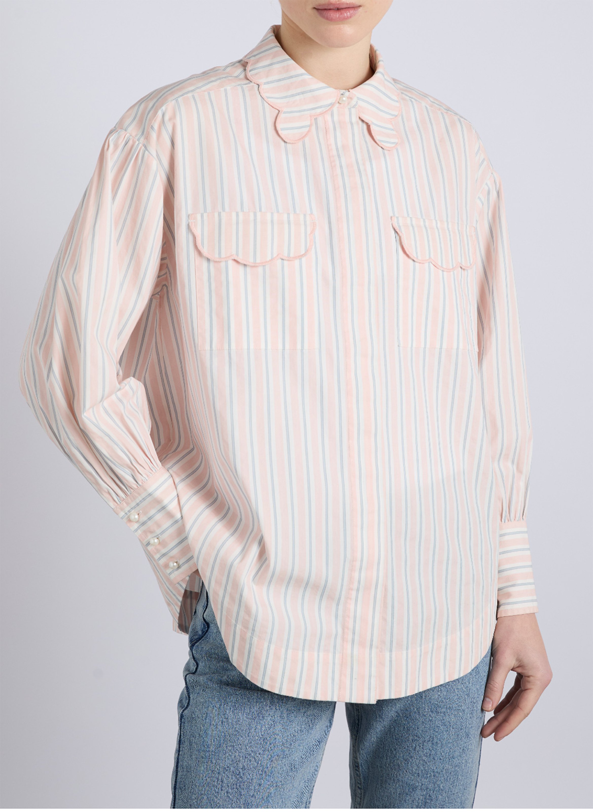 Wijd gestreept overhemd met feston details by DAMSON MADDER voor Dames.