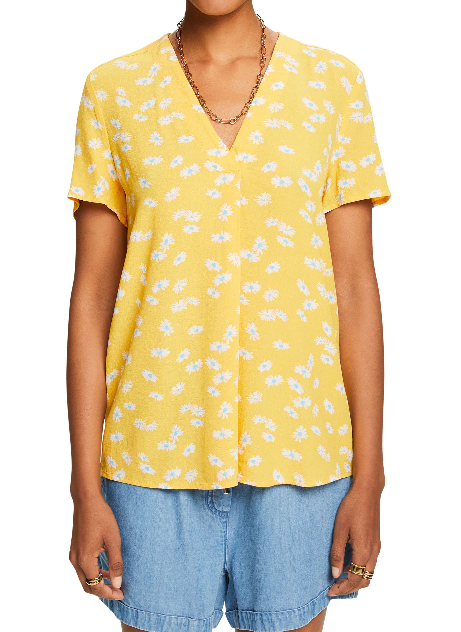 esprit Soepelvallende blouse met V-hals en print - Geel