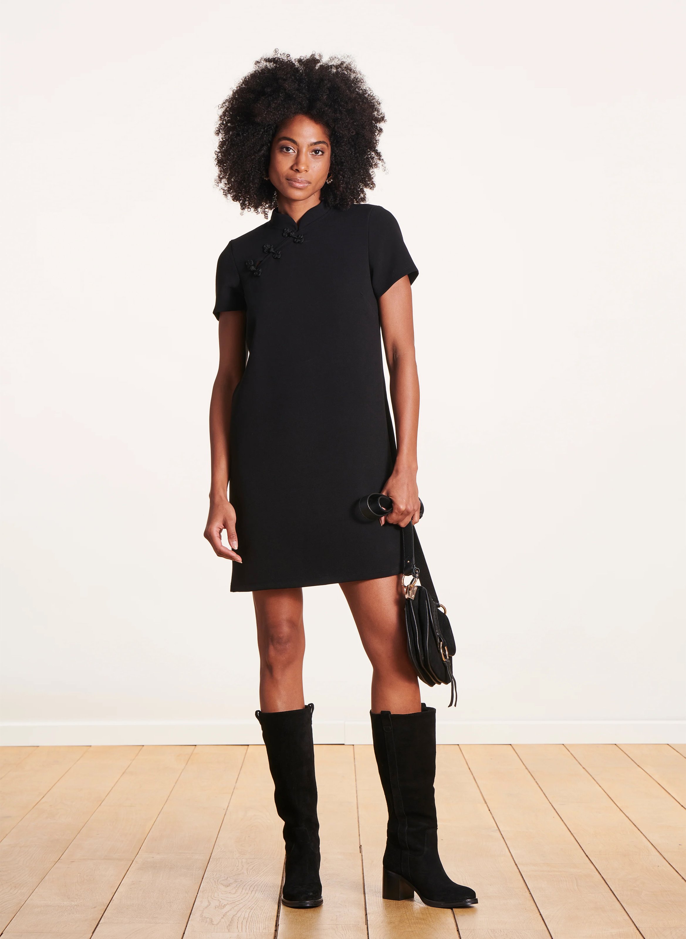 la fee maraboutee Korte uitlopende jurk met Mao-kraag - Zwart