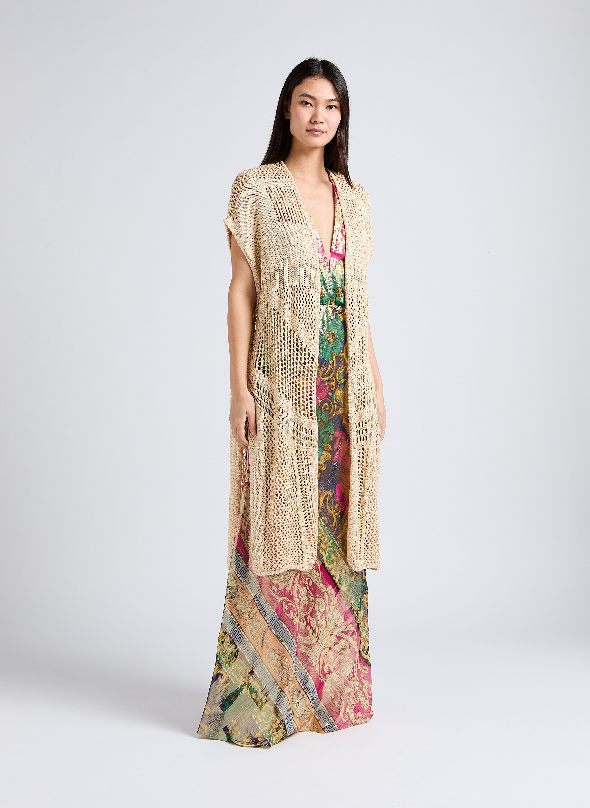 mes demoiselles Open, gebreid vest met ajourmotief en lovertjes - Goudkleurig – STARIA