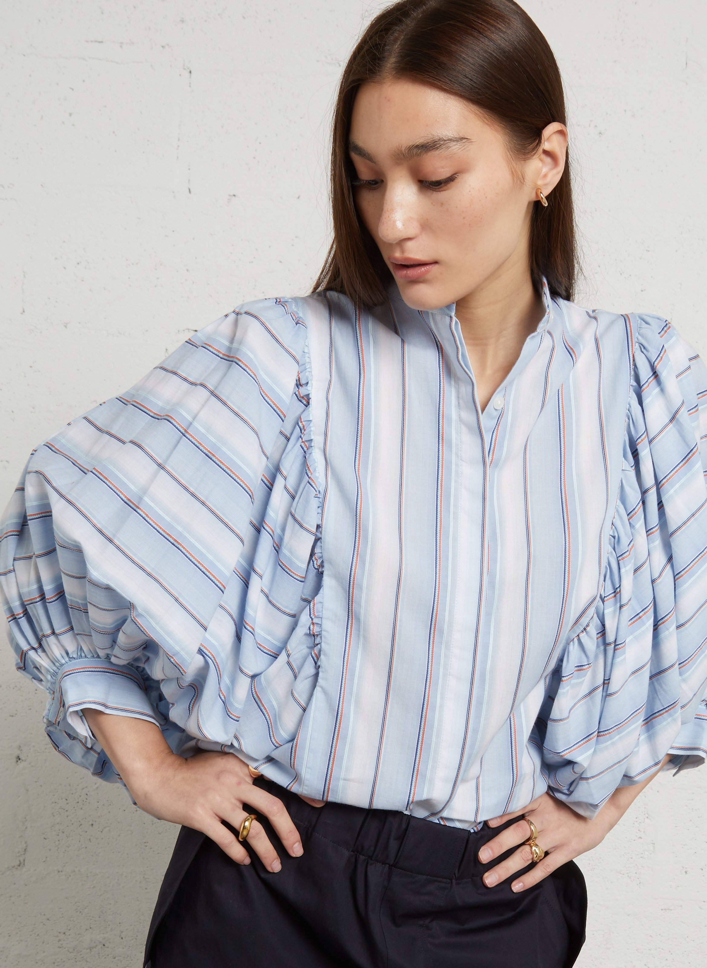 rae antwerp Gestreepte blouse met pofmouwen - Blauw – FIONA