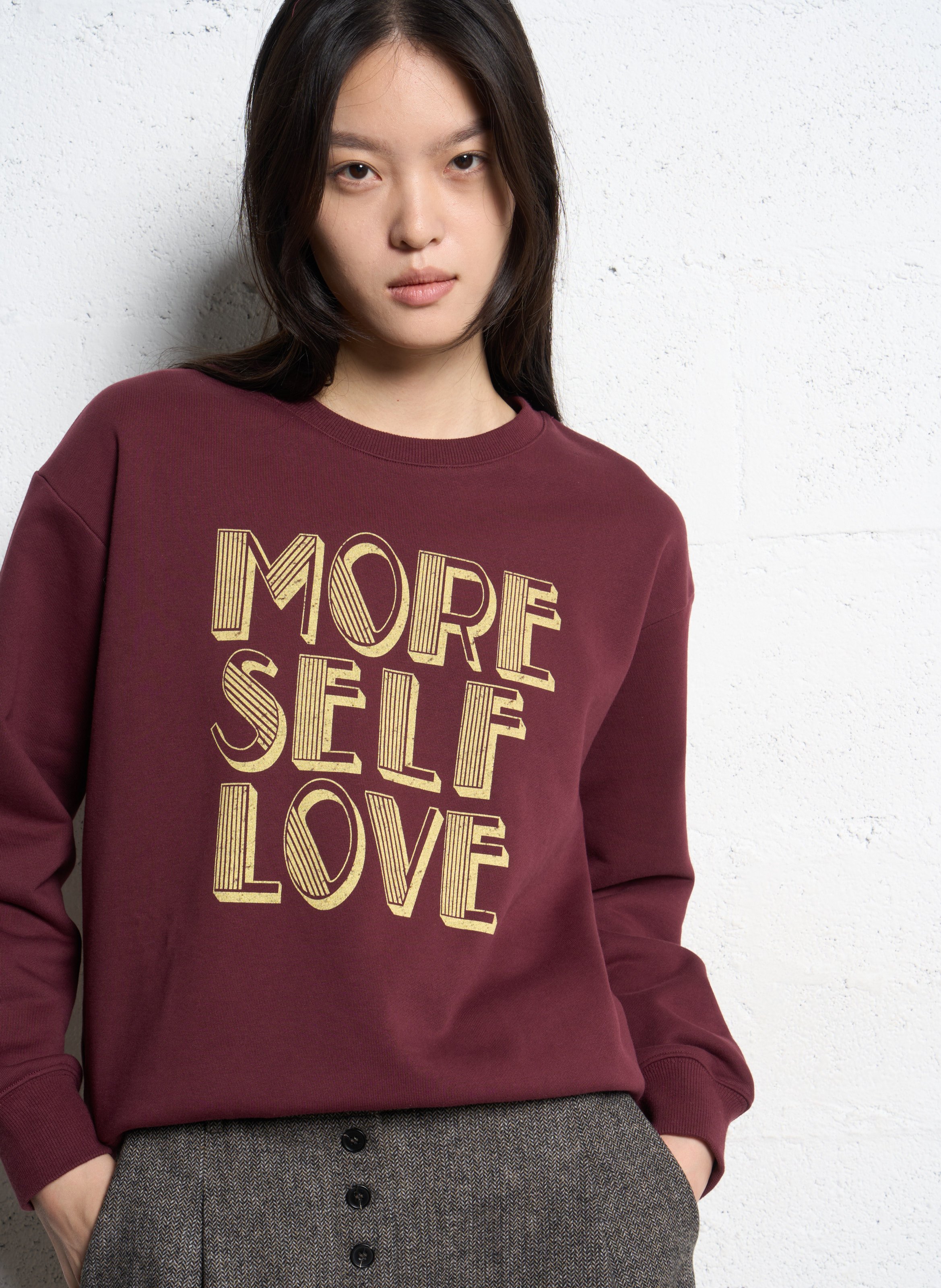 Wijde sweater van biokatoen met ronde hals en zeefdruk by SUNCOO voor Dames.