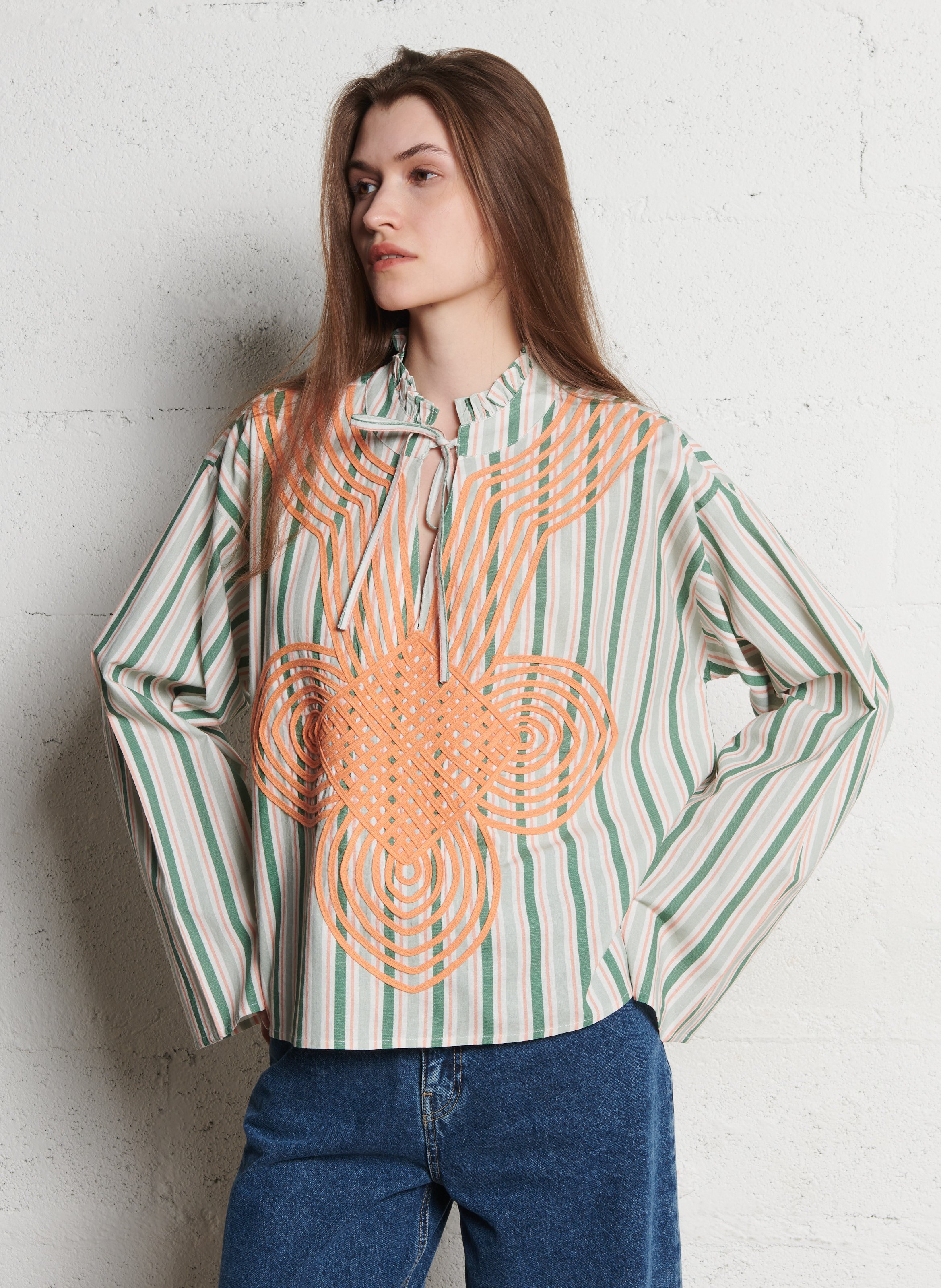 BLOUSE MET GEBORDUURDE KRAAG