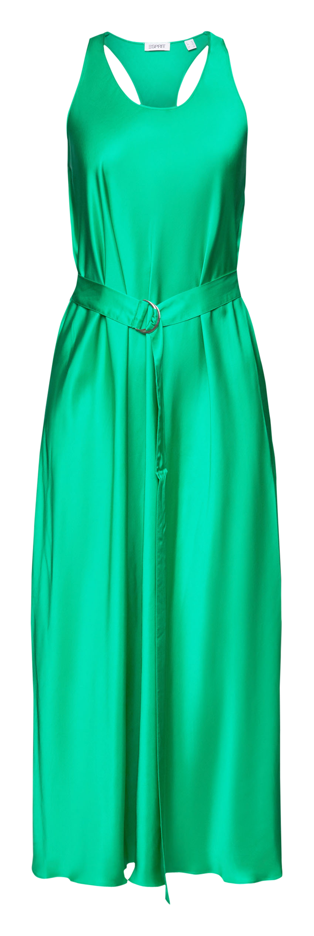 esprit Langes Kleid mit Rundhalsausschnitt aus Satin - Grun