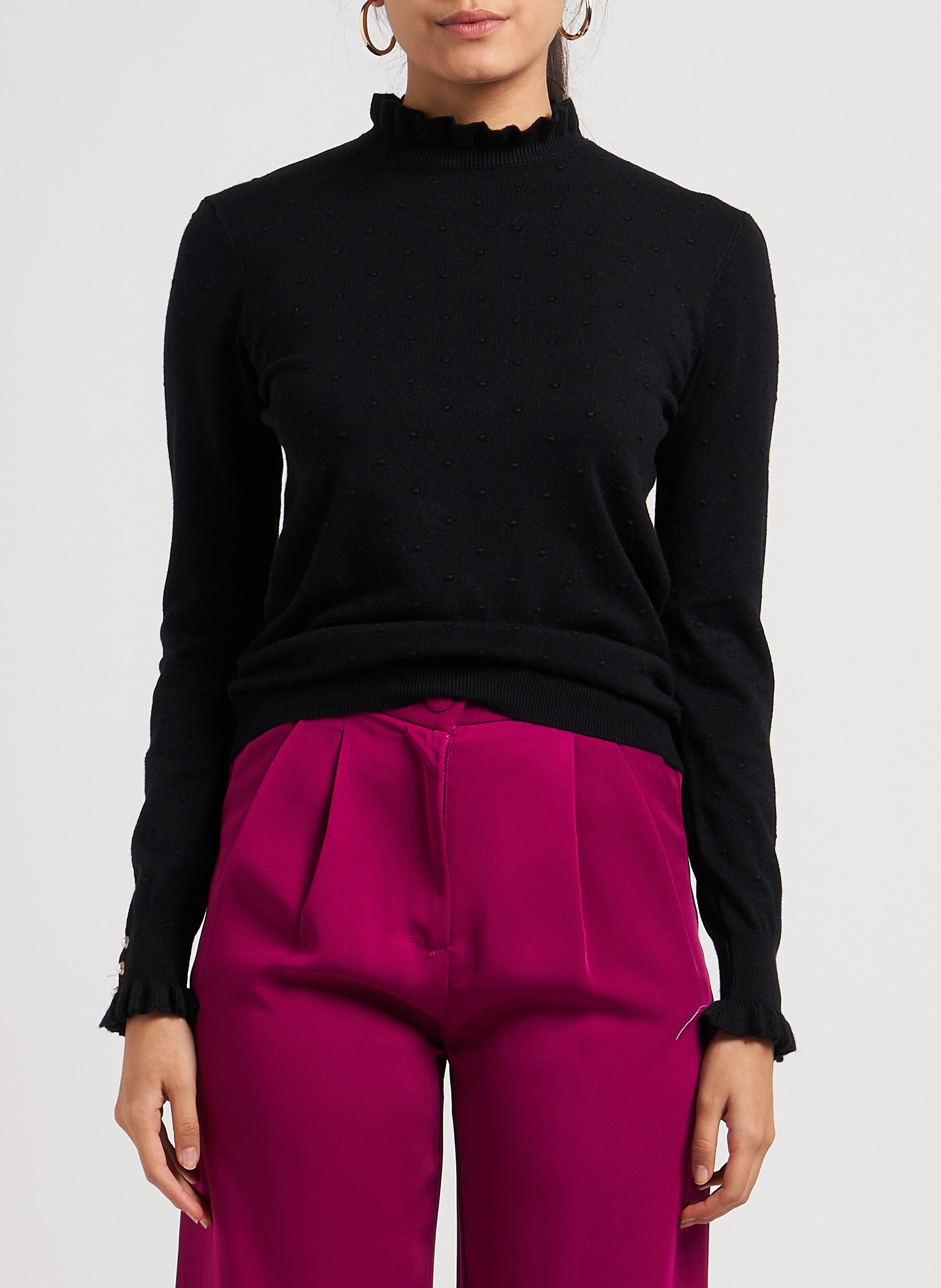 la petite etoile Jacquard-Rundhalspullover mit Rüschen - Schwarz – SOLFERINO