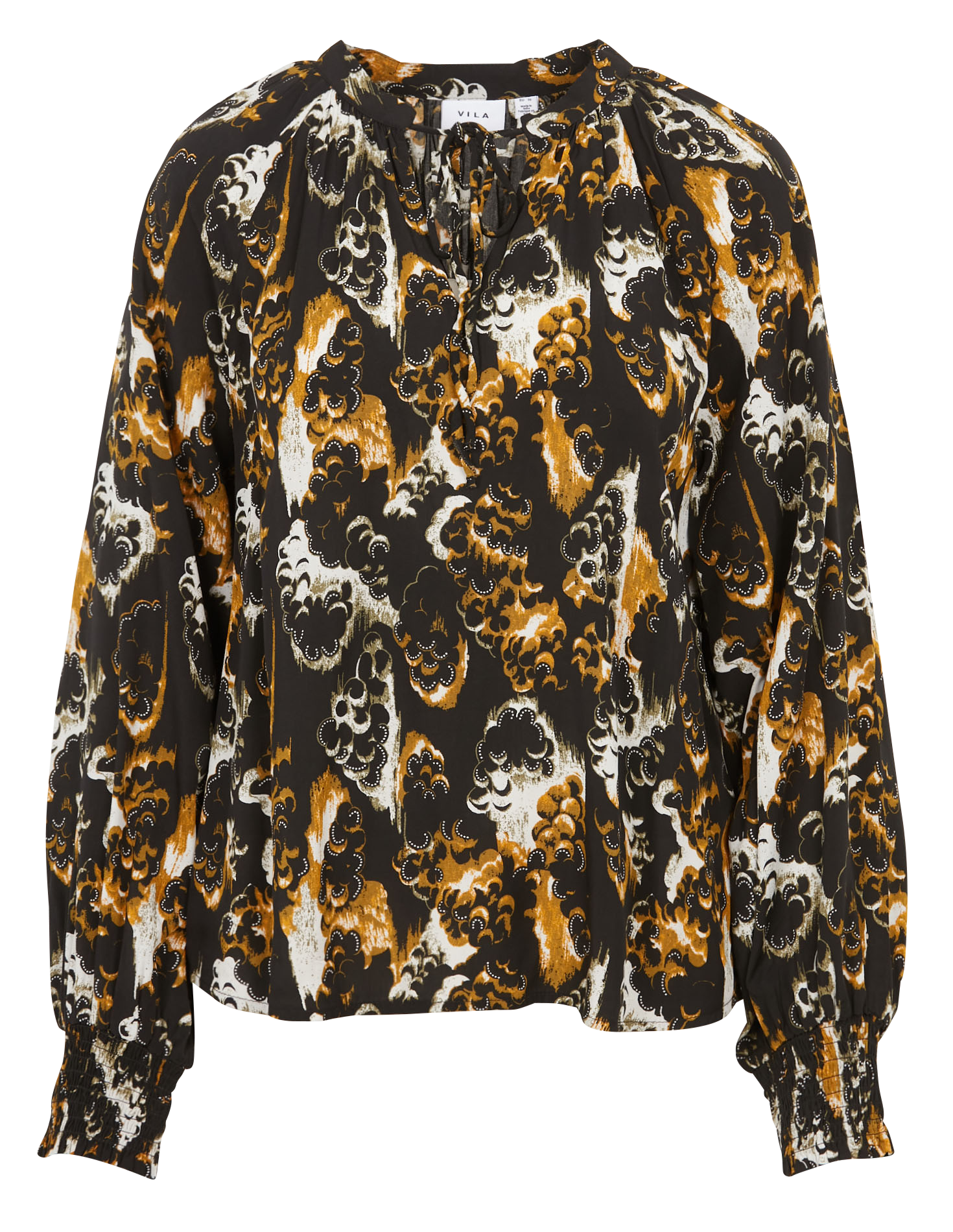 vila Ausgestelltes Top mit V-Ausschnitt und Print - Schwarz – ZENIA JADA