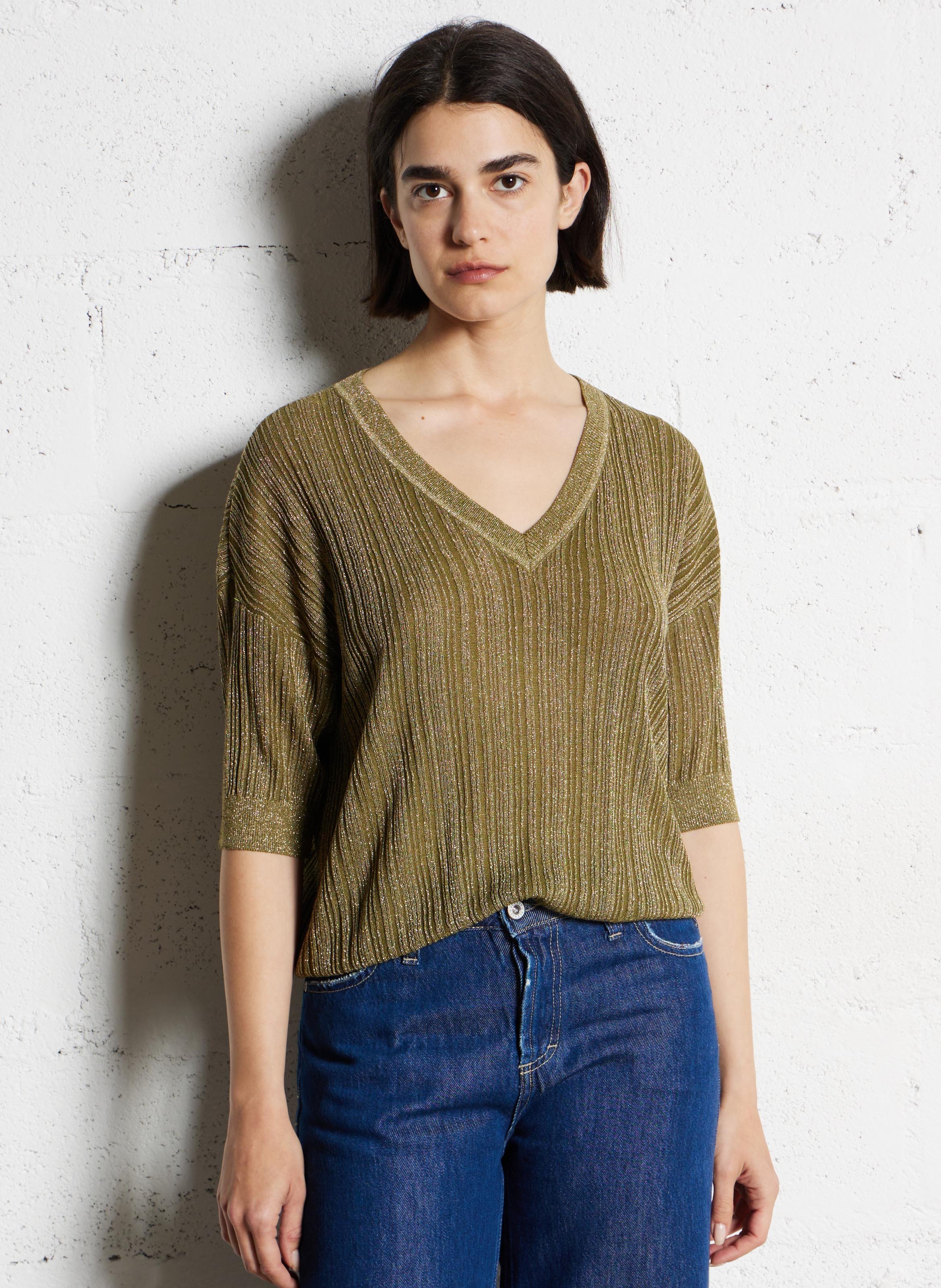 vila Pullover mit V-Ausschnitt im Metallic-Look - Grun
