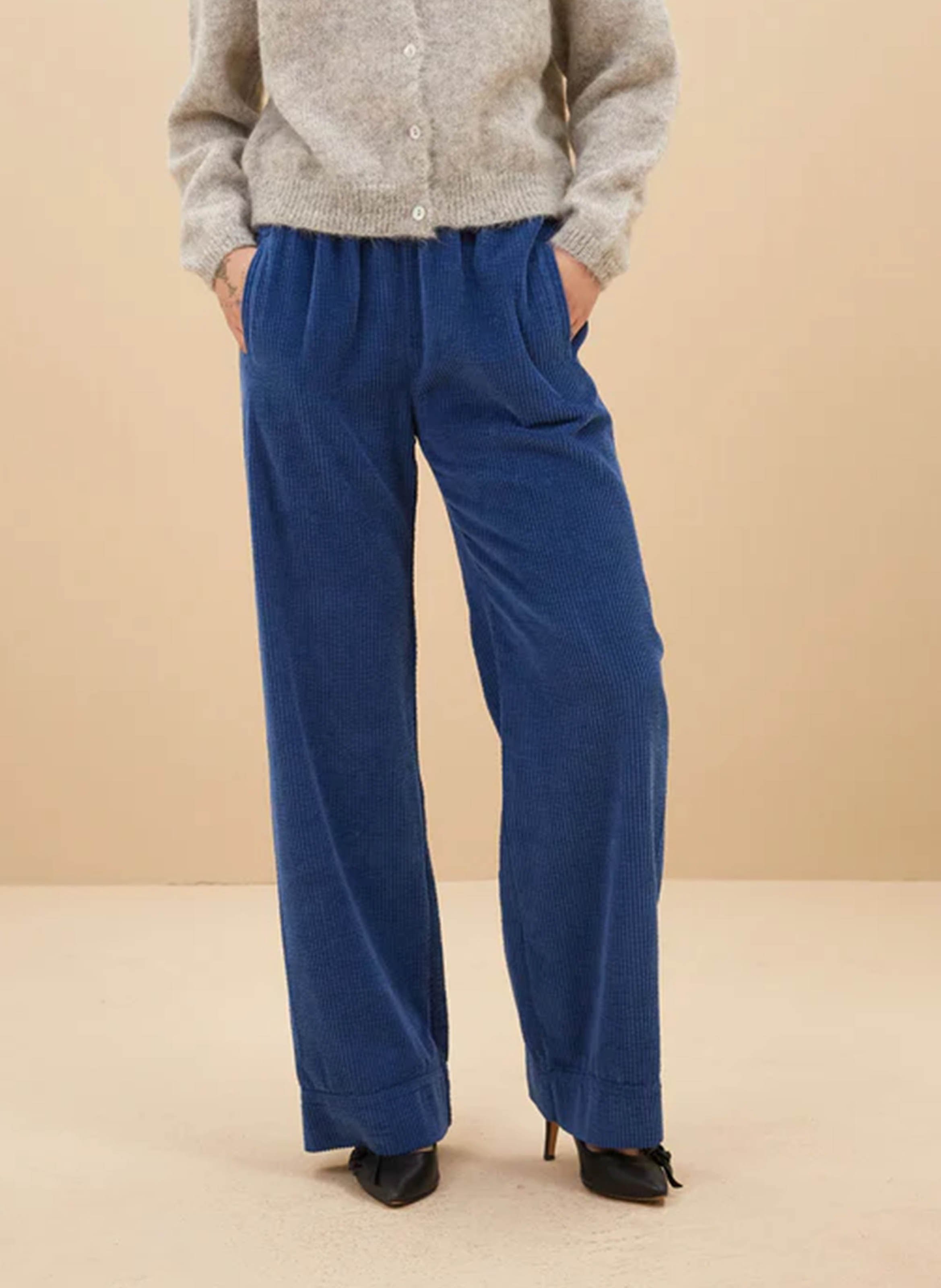 by bar Pantalon droit velours côtelé en coton - Bleu – MEES