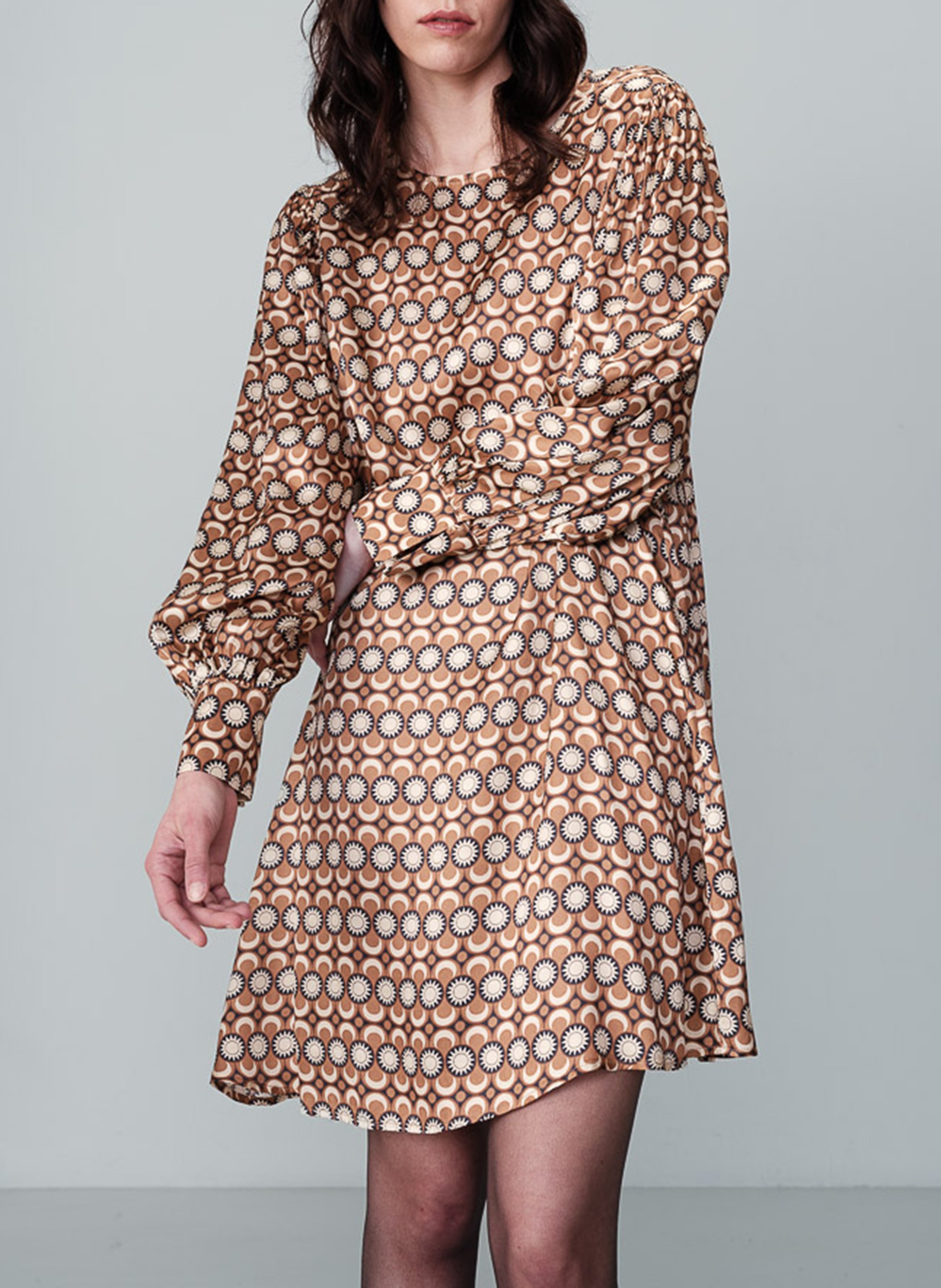 grace et mila Bedrucktes Kurzkleid mit Rundhalsausschnitt - Braun – NUIT