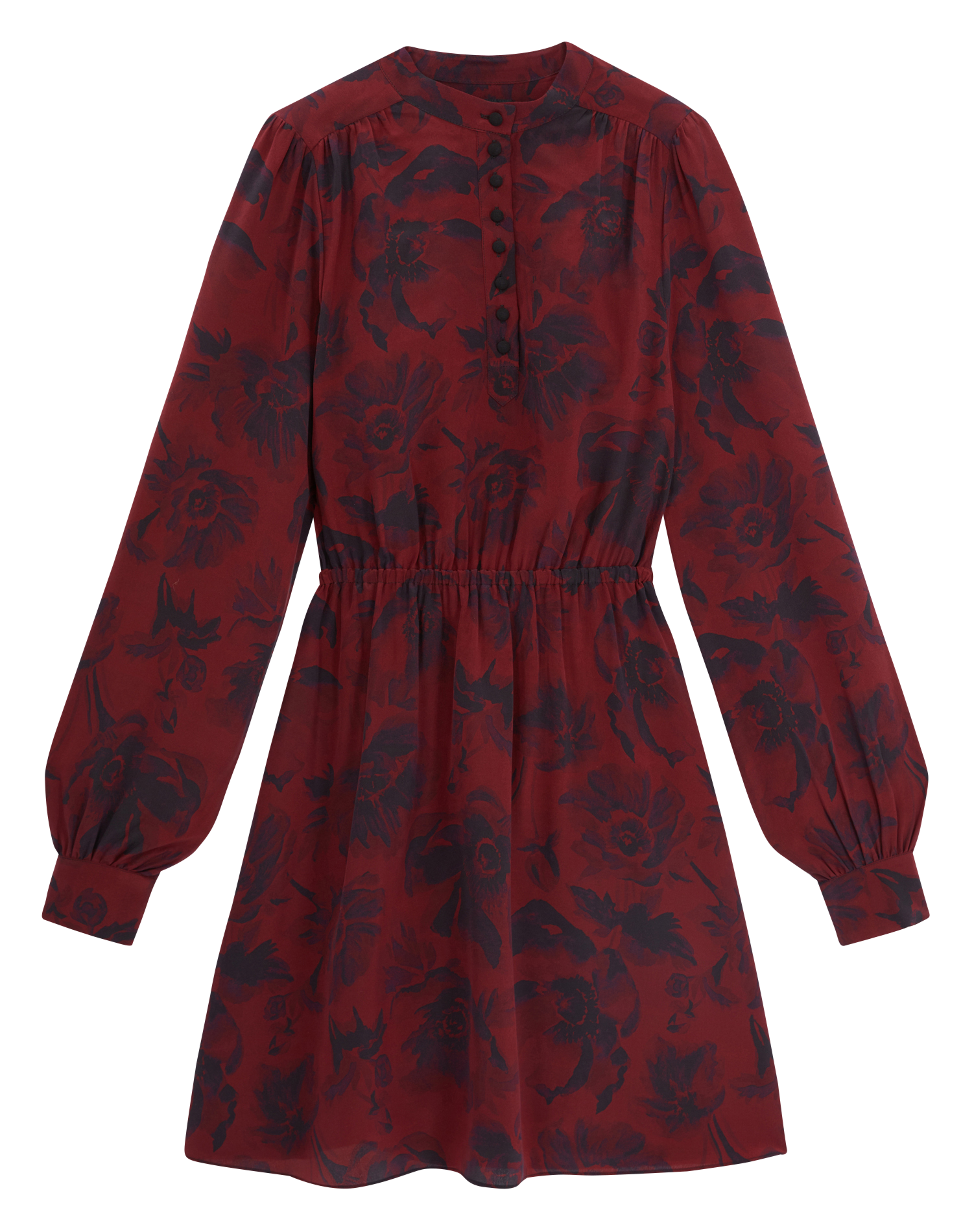 the kooples Vestido corto de seda estampado con cuello redondo - Cereza