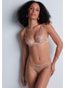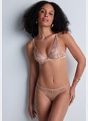 Plunging model, scarf shape, allowing for deep and sexy necklines. Cups with progressive shells - push-up effect. Benefit: it brings the breasts closer together, the lace rising on the upper cup emphasizes the curve of the chest for a stunning neckline. Up to cup E.