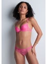 Bringing the breasts together in a natural and sexy push-up effect, the plunge padded bra visually enlarges the bust thanks to its material that goes up the sides of the chest and the detail of the double straps adorning the beginning of the shoulder straps. Structured, it offers a deep and sexy neckline, further enhanced by refined graphic embroidery, perfect to wear under a lacy or sheer top for contrast, shine, and reveal games.