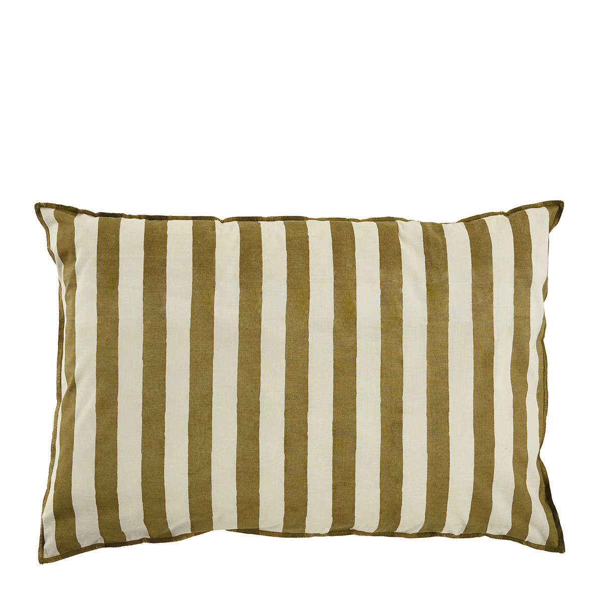 Indulge in this BAYADÈRE cotton cushion cover with its timeless motif, block-printed using artisanal methods. The combination of cream and cumin tones offers a harmonious and elegant duo that will easily complement any style of decor. These two trendy colors will brighten up your spaces!