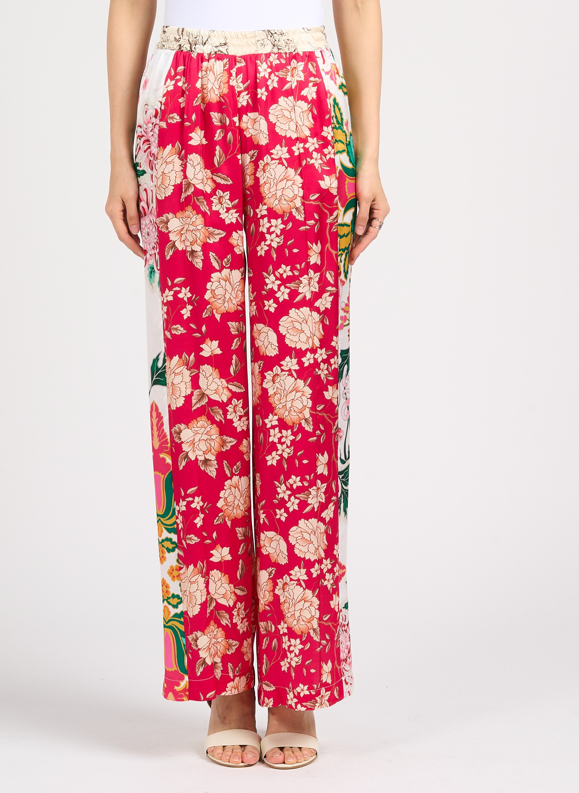 Straight fluid pants with an elastic waistband, various floral patterns combined.