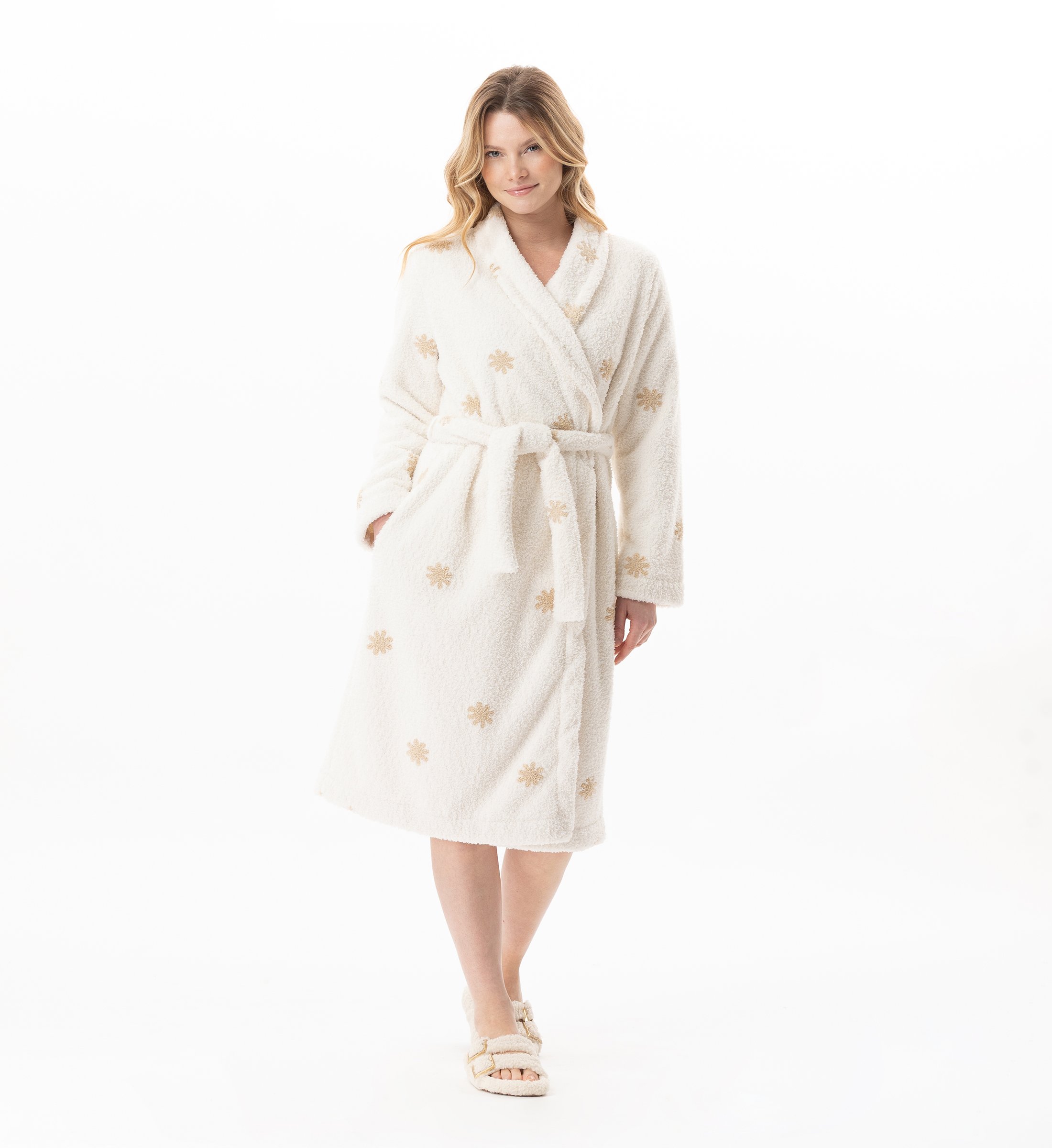 Designed for all your cozy moments and to wrap you in warmth, our new essential homewear combines warmth and softness in a enveloping cut, a wide shawl collar, a belt, and an inner tie that ensures a perfect wrap.