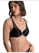 A wired bra with smooth cups that shapes a beautiful round bust. Its memory foam cups provide a soft feel that perfectly adapts to your curves. The cups are soft and opaque to ensure total invisibility under clothing while being adorned with lace on the sides. Its back is entirely lace, and a lace insert is located at the neckline. The straps of this bra are comfortable and fully adjustable in length.