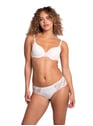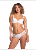 The perfect blend of comfort and a beautifully rounded bust. This underwired bra features fine molded cups, side-covered with lace, providing perfect coverage for everyday wear. 100% comfort with a sheer tulle back, lined for fuller busts, ensuring optimal support. Comfortable and adjustable bra straps.