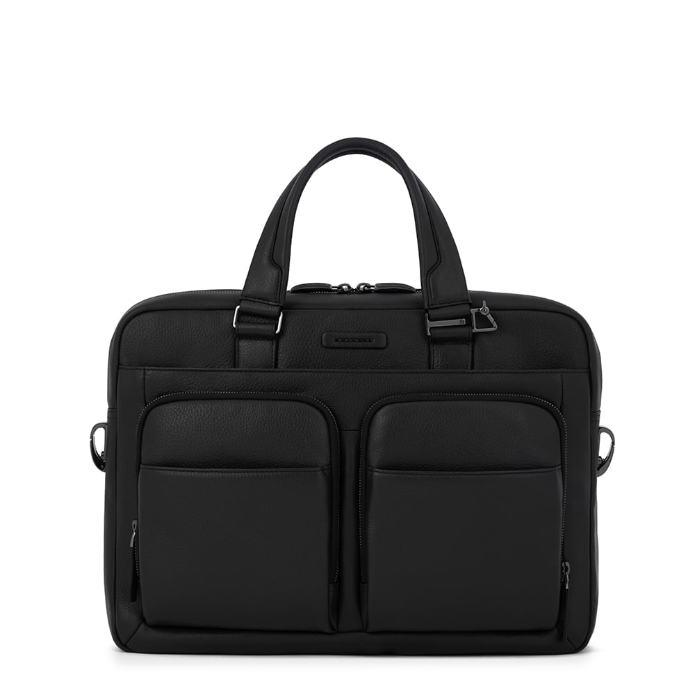 Grained faux leather laptop bag by PIQUADRO for Men.