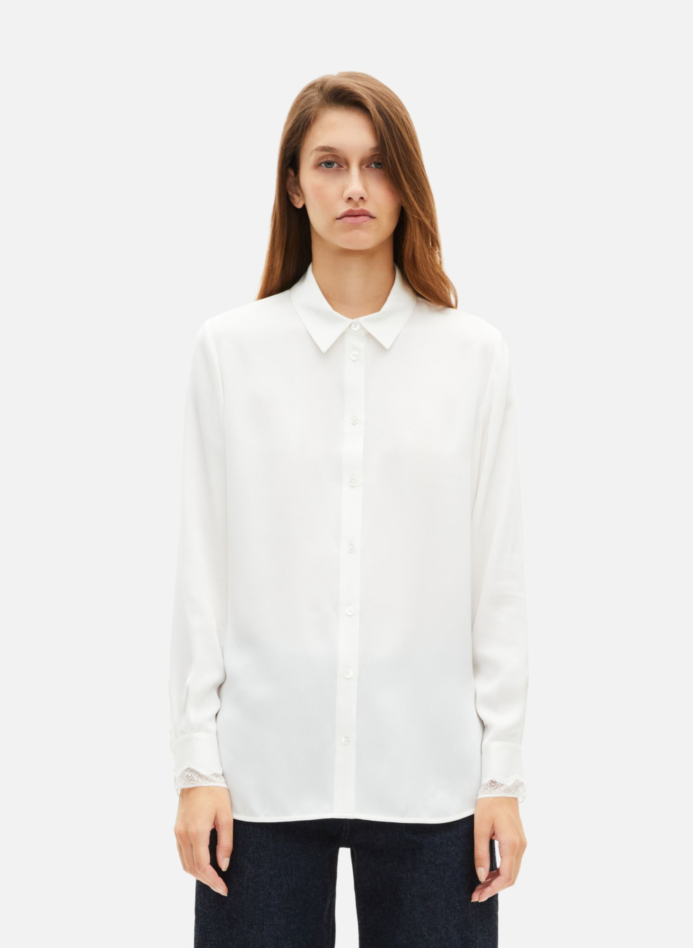 Printed silk satin classic-collar shirt by THE KOOPLES for Women.