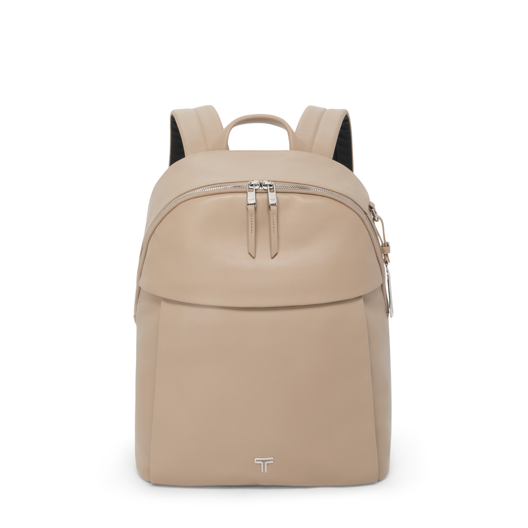This glossy leather backpack will elevate your everyday life. This versatile size combines thoughtful interior organization with modern style. Its detachable pouch can hold everything you need for your travels.