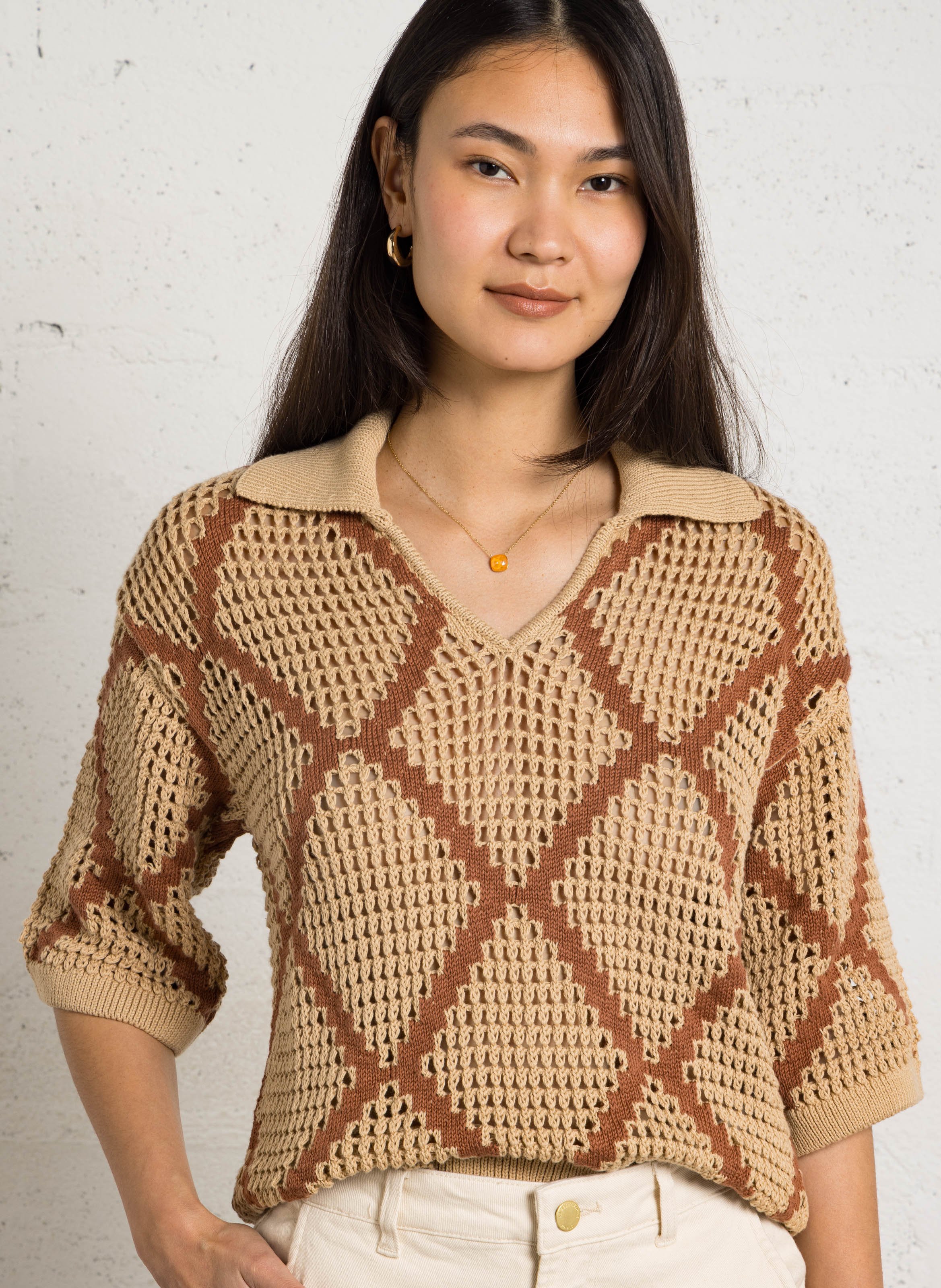 maison 123 Polo à motif en maille ajourée - Beige – PERCY