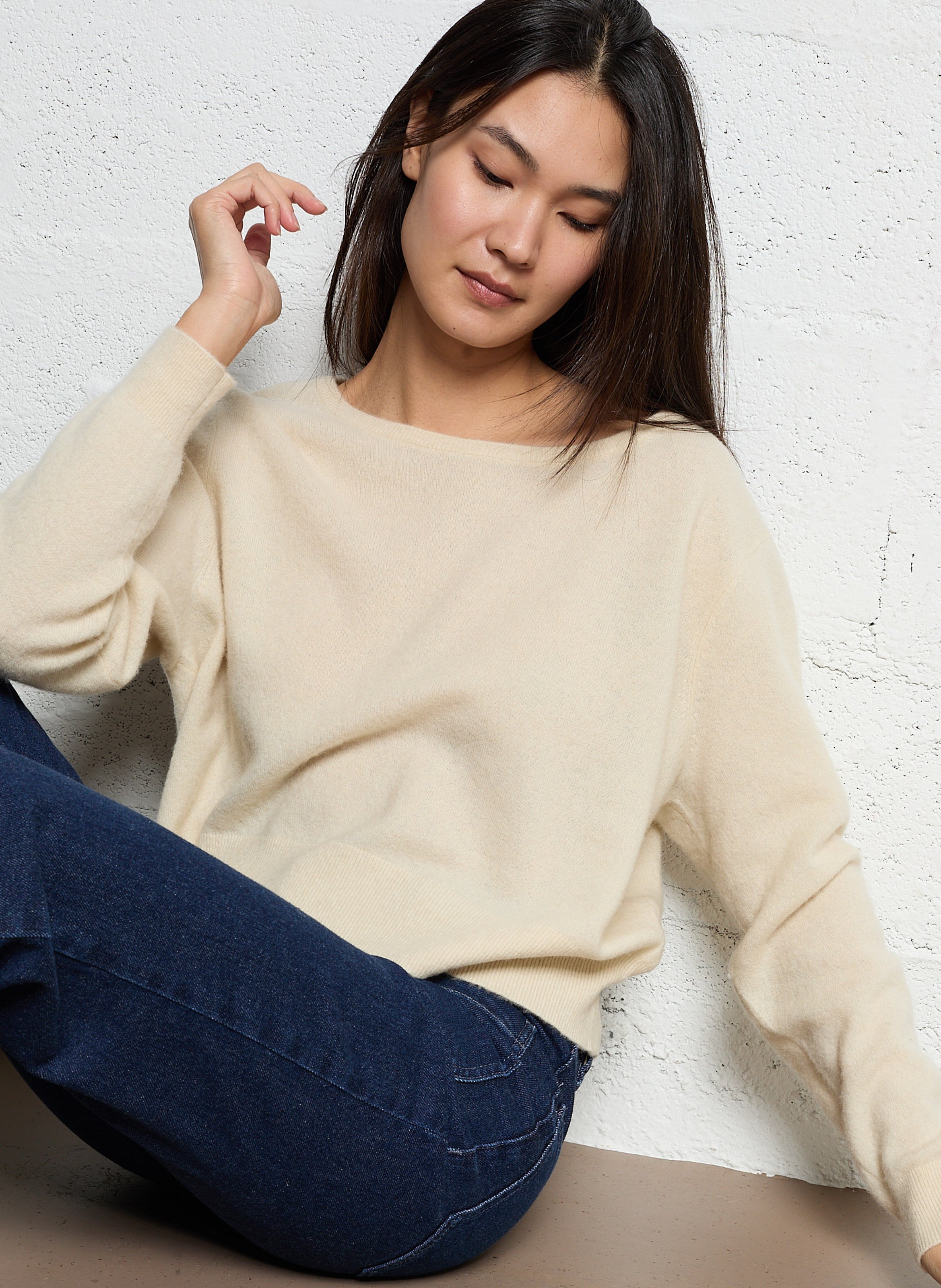 american vintage Pull ample en laine mélangée - Beige – RAXOW