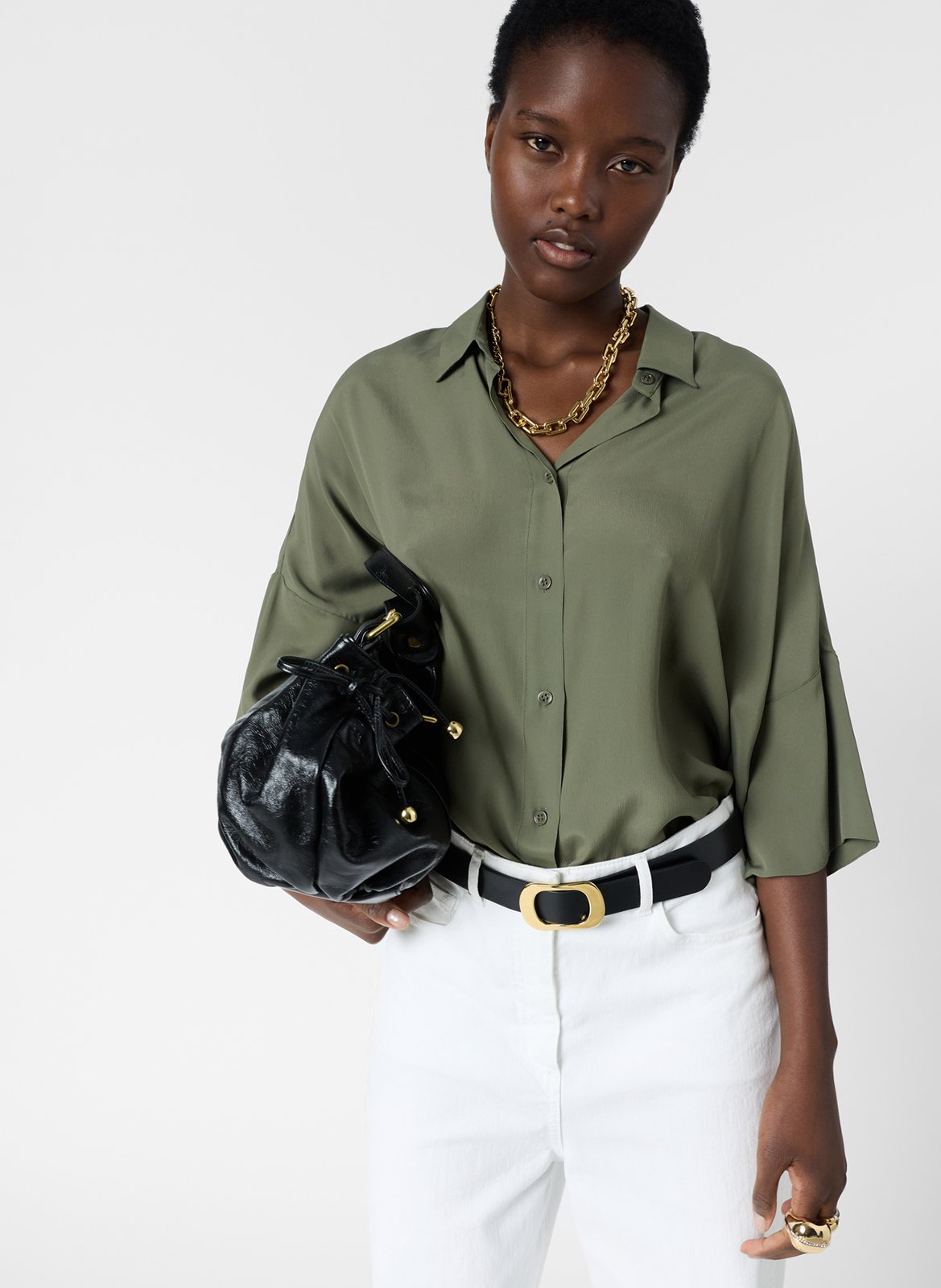 gerard darel Chemisier fluide boutonné uni - Kaki – CIRAE