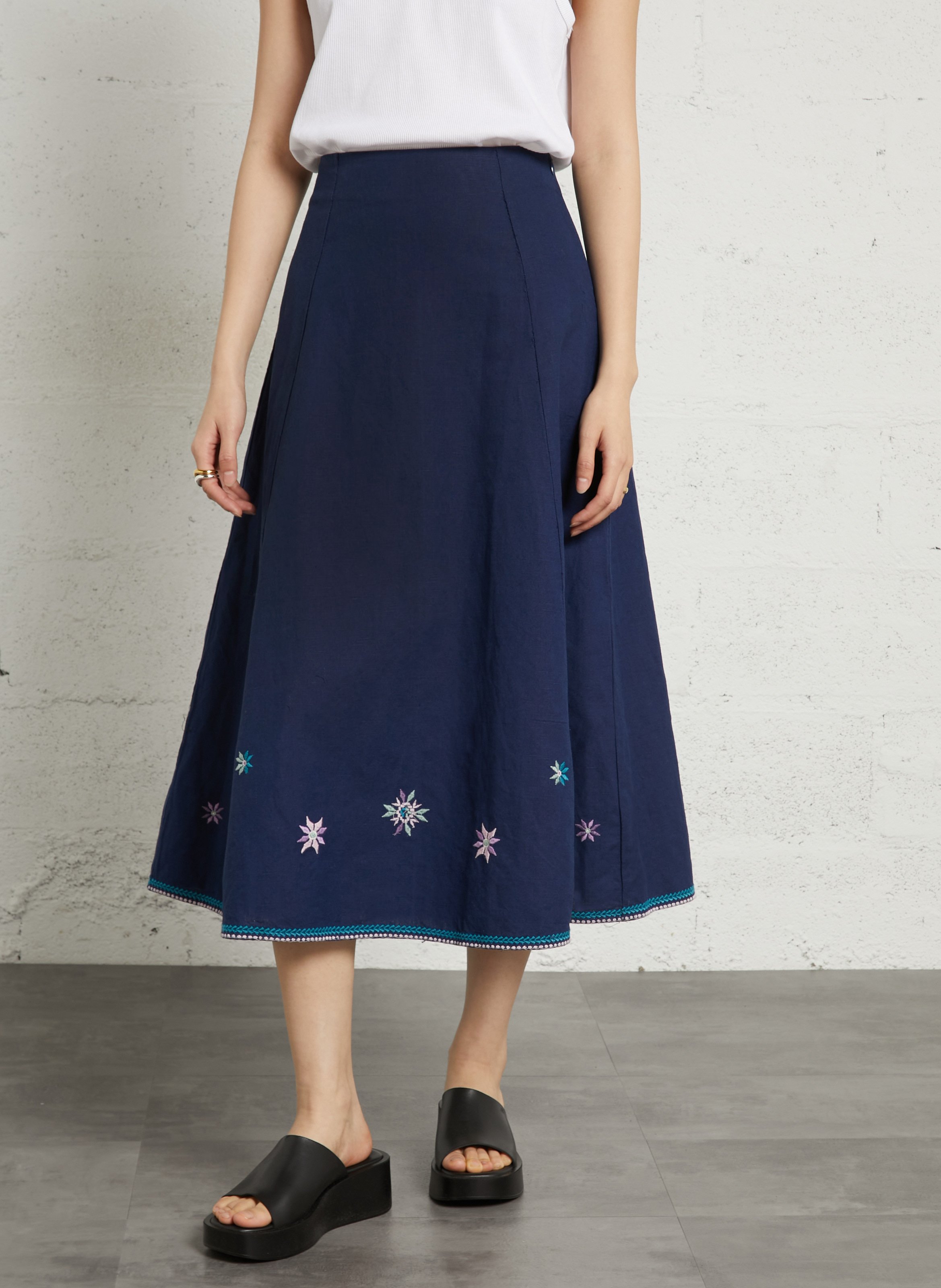 louise misha Jupe longue évasée à broderies - Bleu – DAFNE