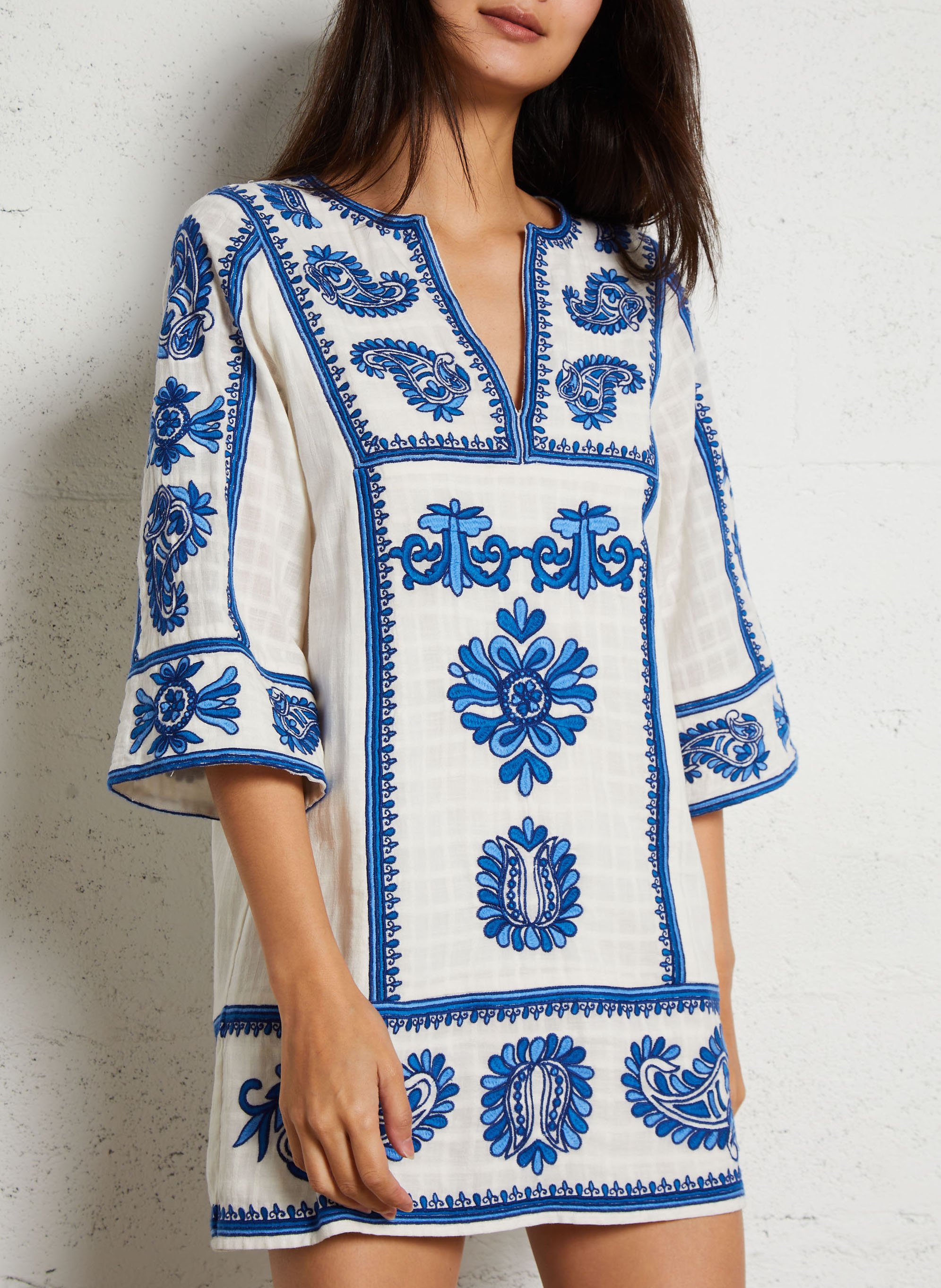 maison 123 Robe courte col V en coton - Bleu – MARGUERITE