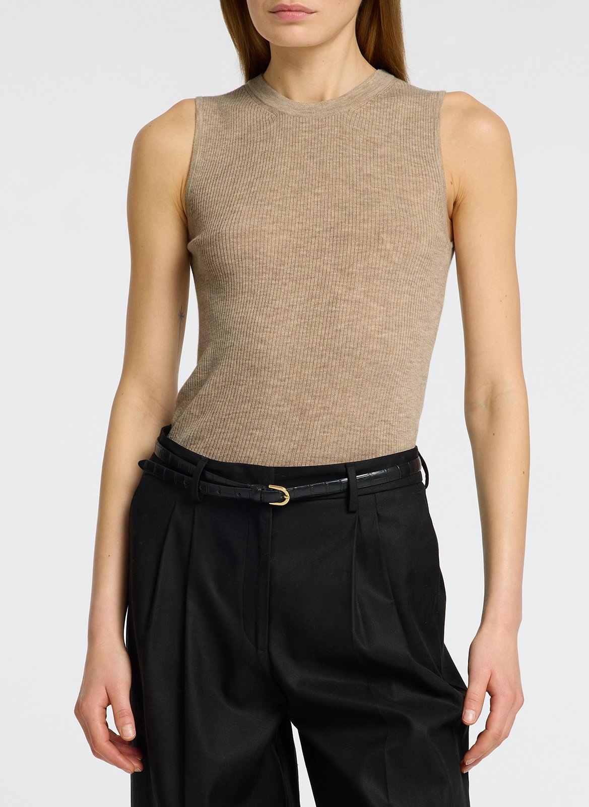 selected Débardeur ajusté côtelé - Beige – INGRID