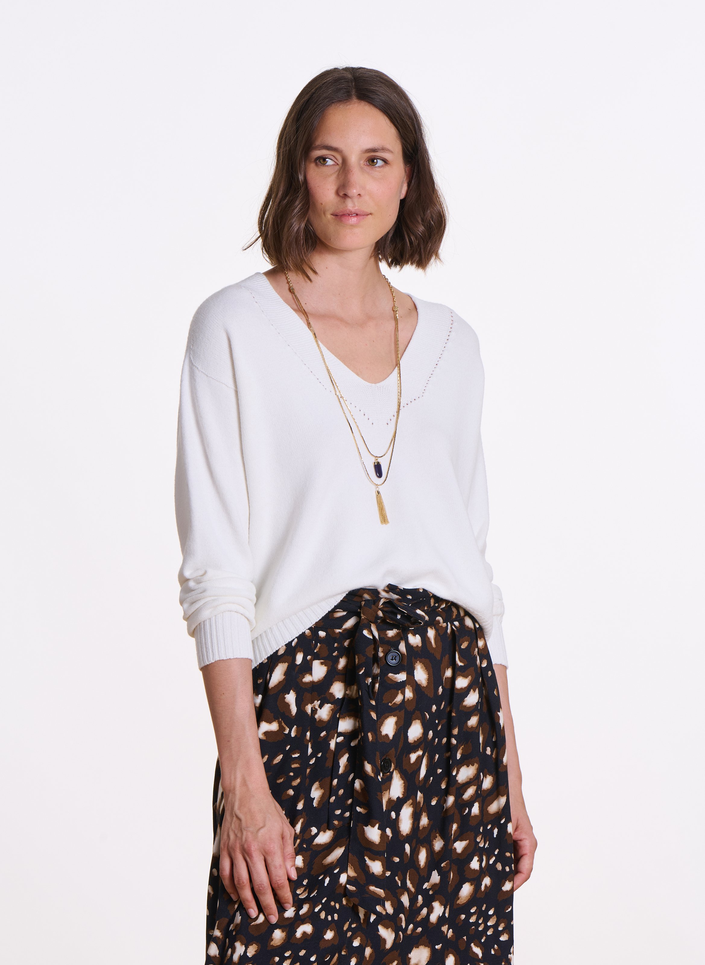 - V-neck with decorative stitching
