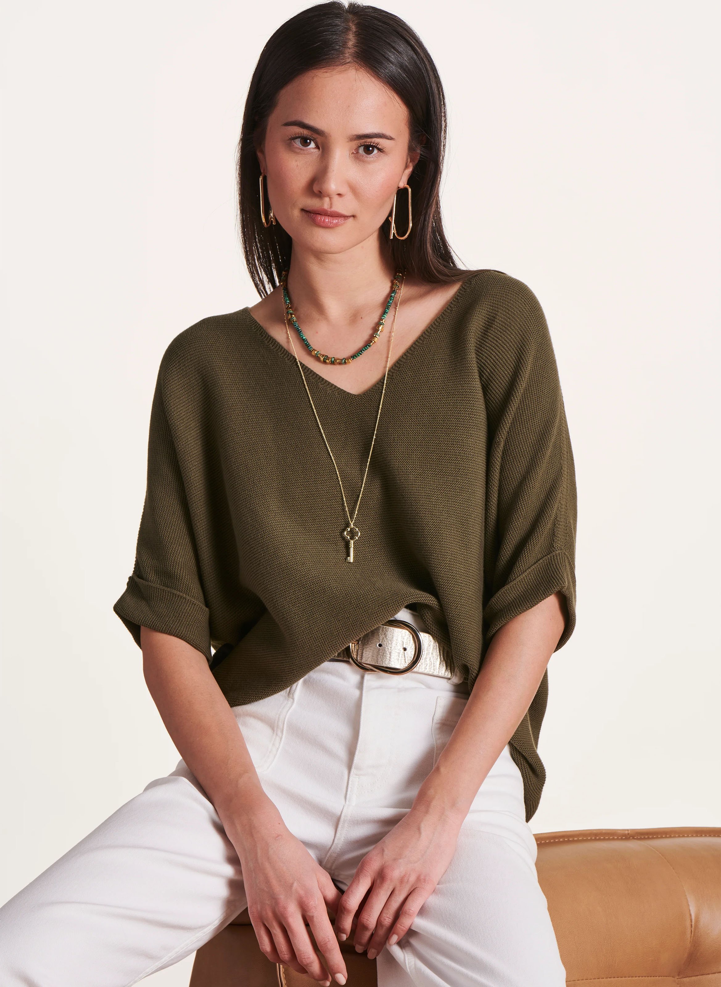 Loose-fit V-neck knit top by LA FEE MARABOUTEE for Women.