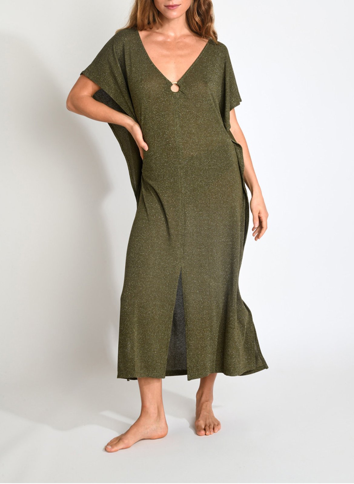 livia Metallic beach tunic - Khaki – FABIOLA HAMAMET