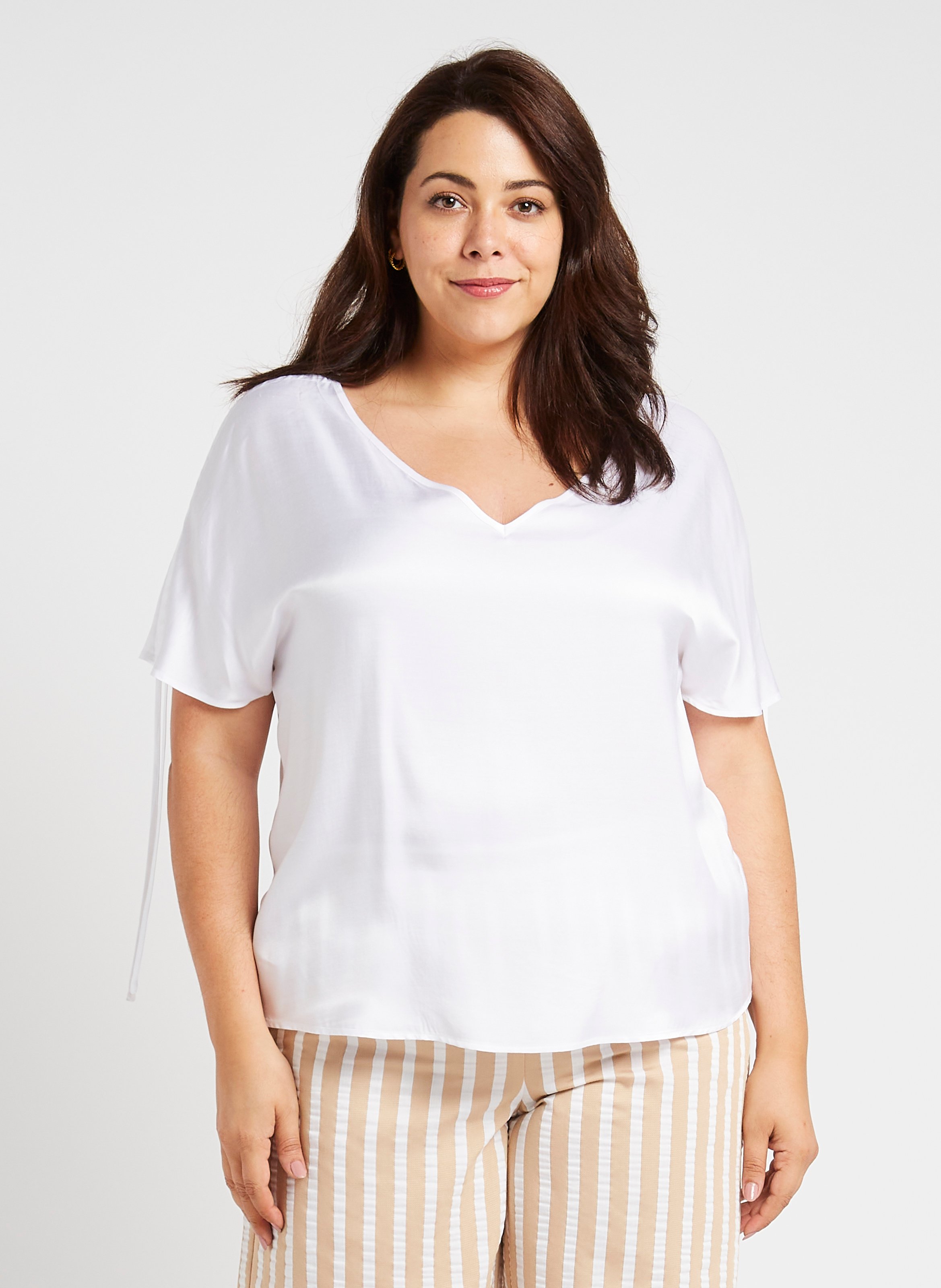 persona by marina rinaldi Straight flowing and textured transparent T-shirt - White – EXPLOIT