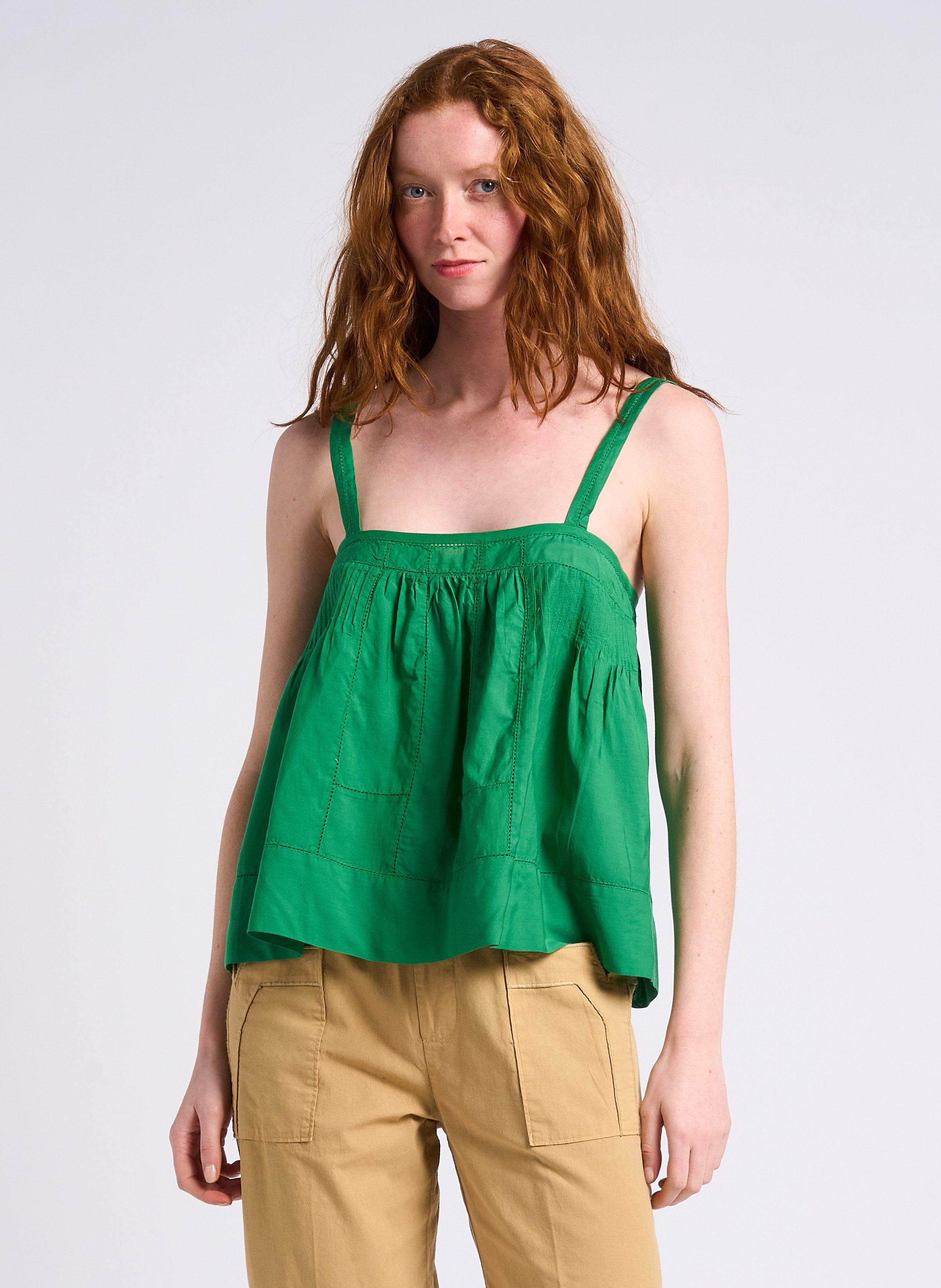 swildens Short openwork cotton tank top - Green – NICO